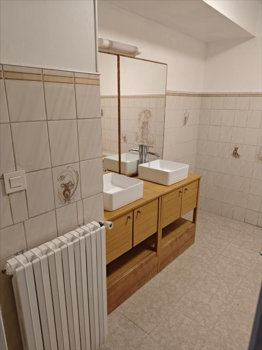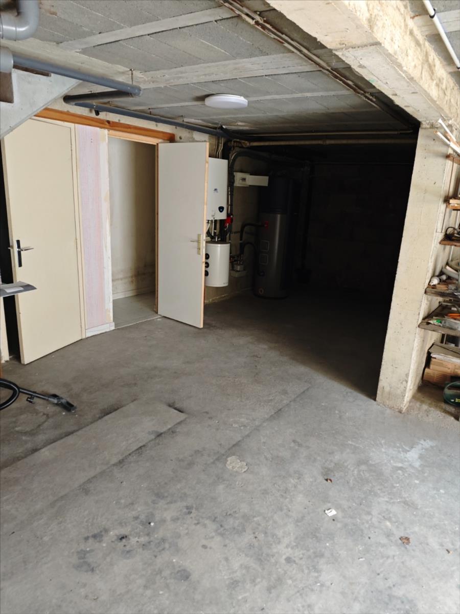 Au rez-de-chaussée : sous-sol sur la totalité de la maison à usage de garage, chaufferie, buanderie et 2 pièces de rangement ainsi qu'une salle d'eau.Au premier étage : couloir desservant wc, salle de bains, cuisine aménagée et équipée (plaque à induction + hotte électrique + four : tout est neuf), salle de séjour donnant sur une véranda (fermant à clé et donnant sur le jardinet à l'arrière de la maison).Grenier non aménagé mais isolé.Terrain clos.Eau, électricité, Pompe à chaleur pour le chauffage et ballon thermodynamique pour la production d'eau chaude.