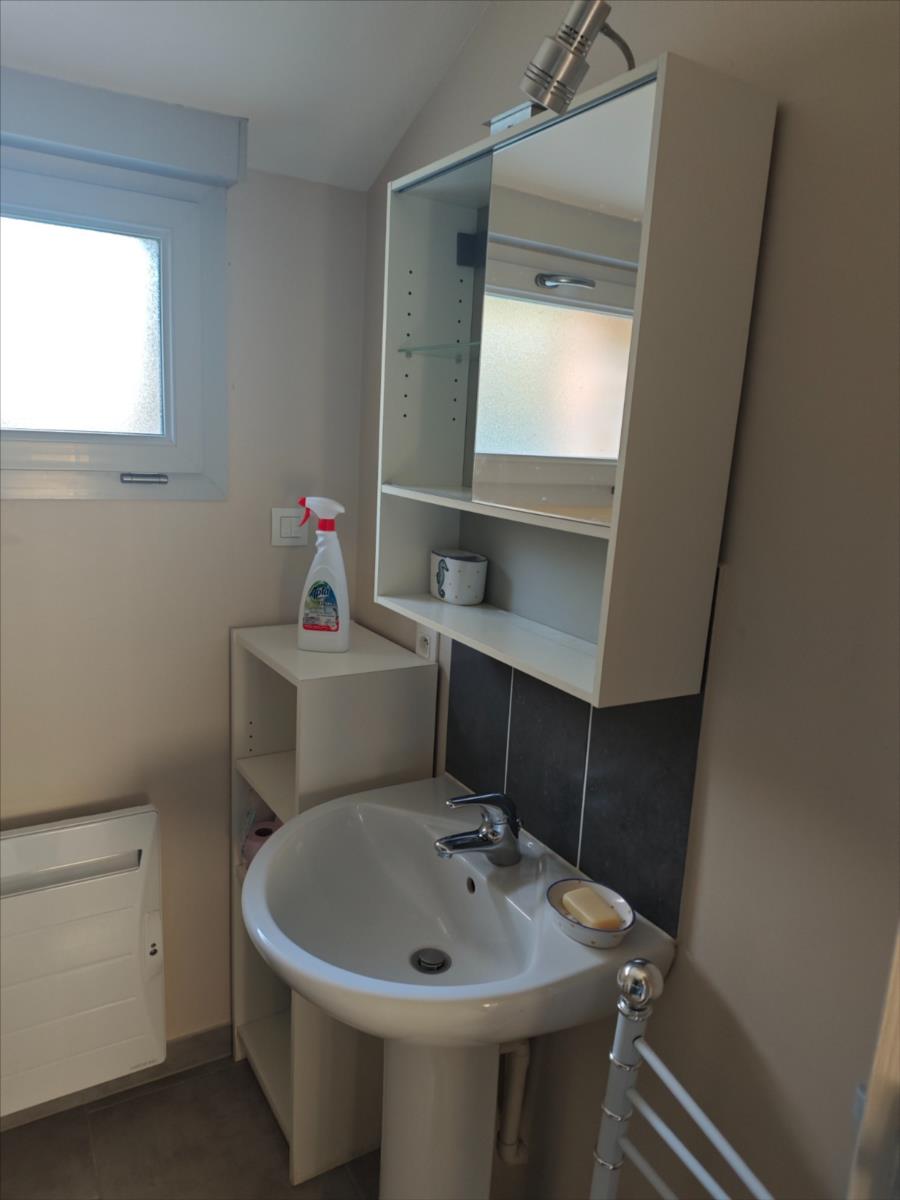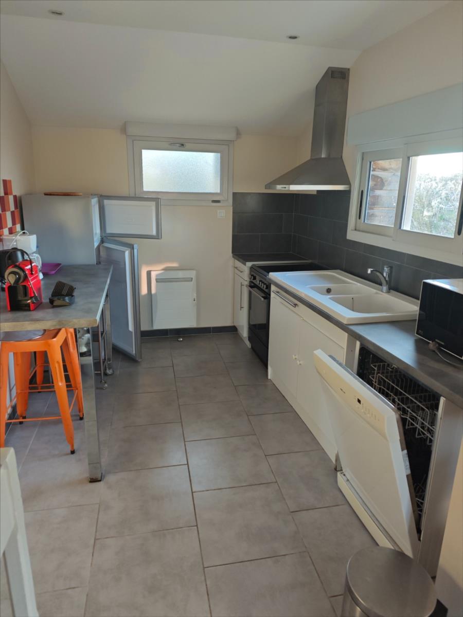Au cœur de la campagne normande, belle longère de plain pied comprenant : Salle de séjour avec cheminée (poêle à bois) ouverte sur une cuisine aménagée et équipée (hotte, four, plaque à induction, réfrigérateur), couloir desservant une salle d'eau avec lavabo, buanderie.