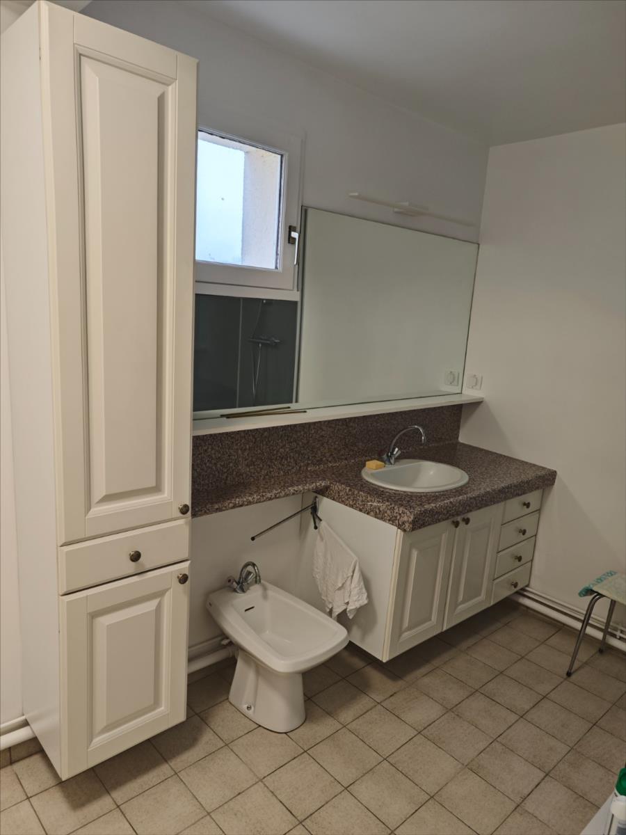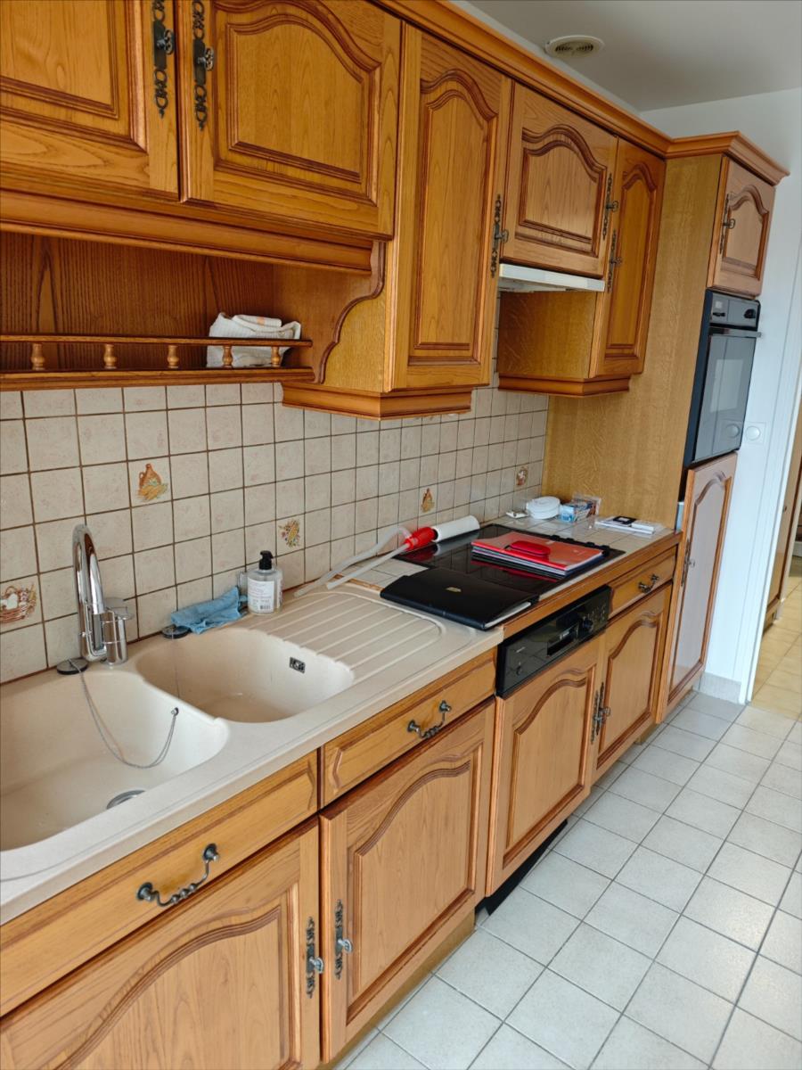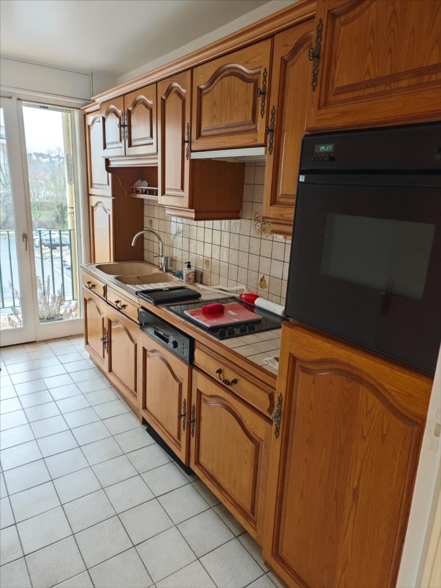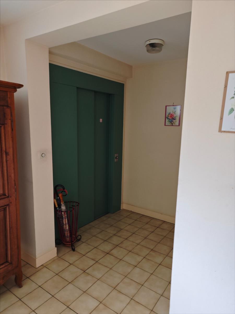 Situé dans un immeuble avec ascenseur, parking et garage, un bel appartement comprenant : Entrée avec placard à usage de penderie, couloir desservant une cuisine aménagée et équipée (hotte électrique + plaque vitrocéramique + four + frigidaire encastré + lave-vaisselle), salle de séjour - salon avec deux grandes portes-fenêtres donnant accès à un balcon, deux chambres avec accès balcon également, WC avec un placard où se trouve le cumulus électrique qui assure la production d'eau chaude), une salle d'eau avec un meuble vasque.