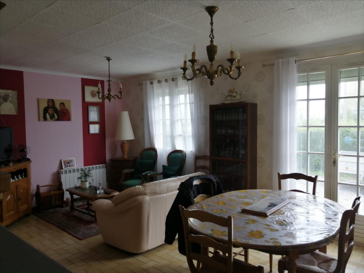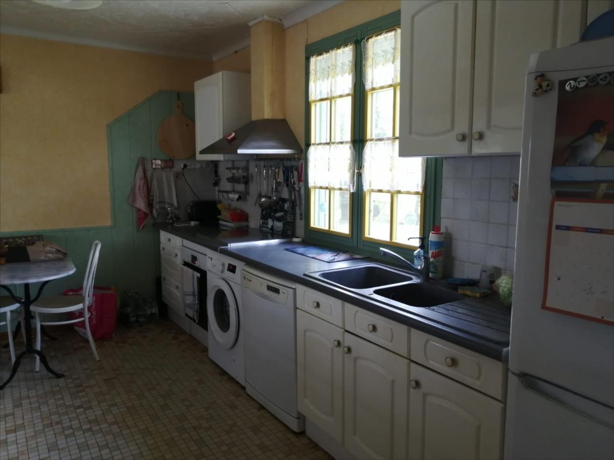 cuisine, séjour de 25 m2 avec cheminée, salle d'eau, WC, deux chambres ;