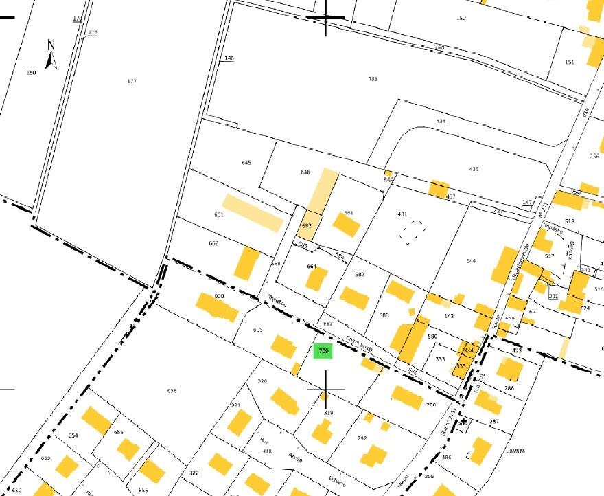 Un terrain à bâtir viabilisé d'une surface de 1021 m2, sur lequel est construit un bâtiment.