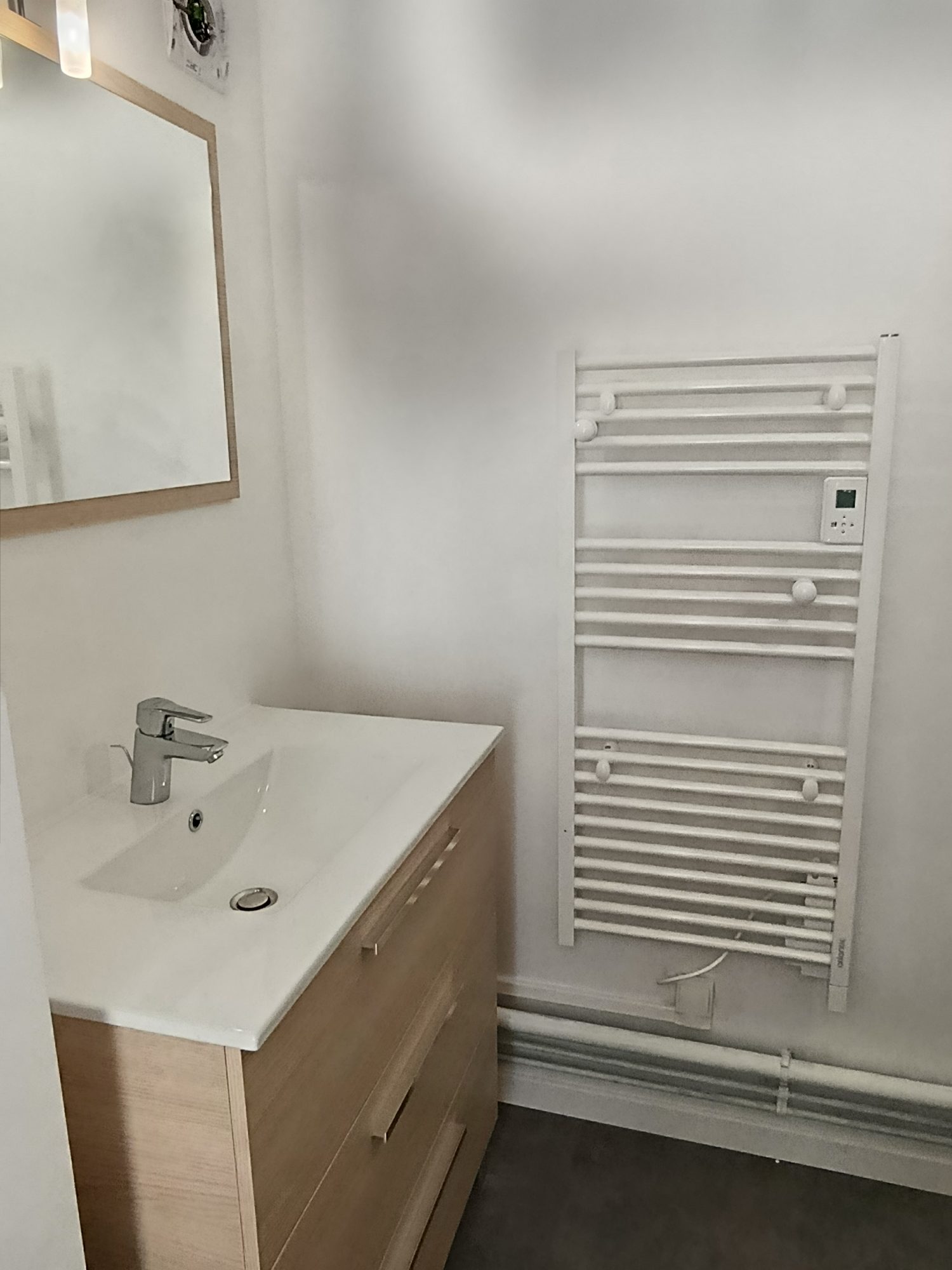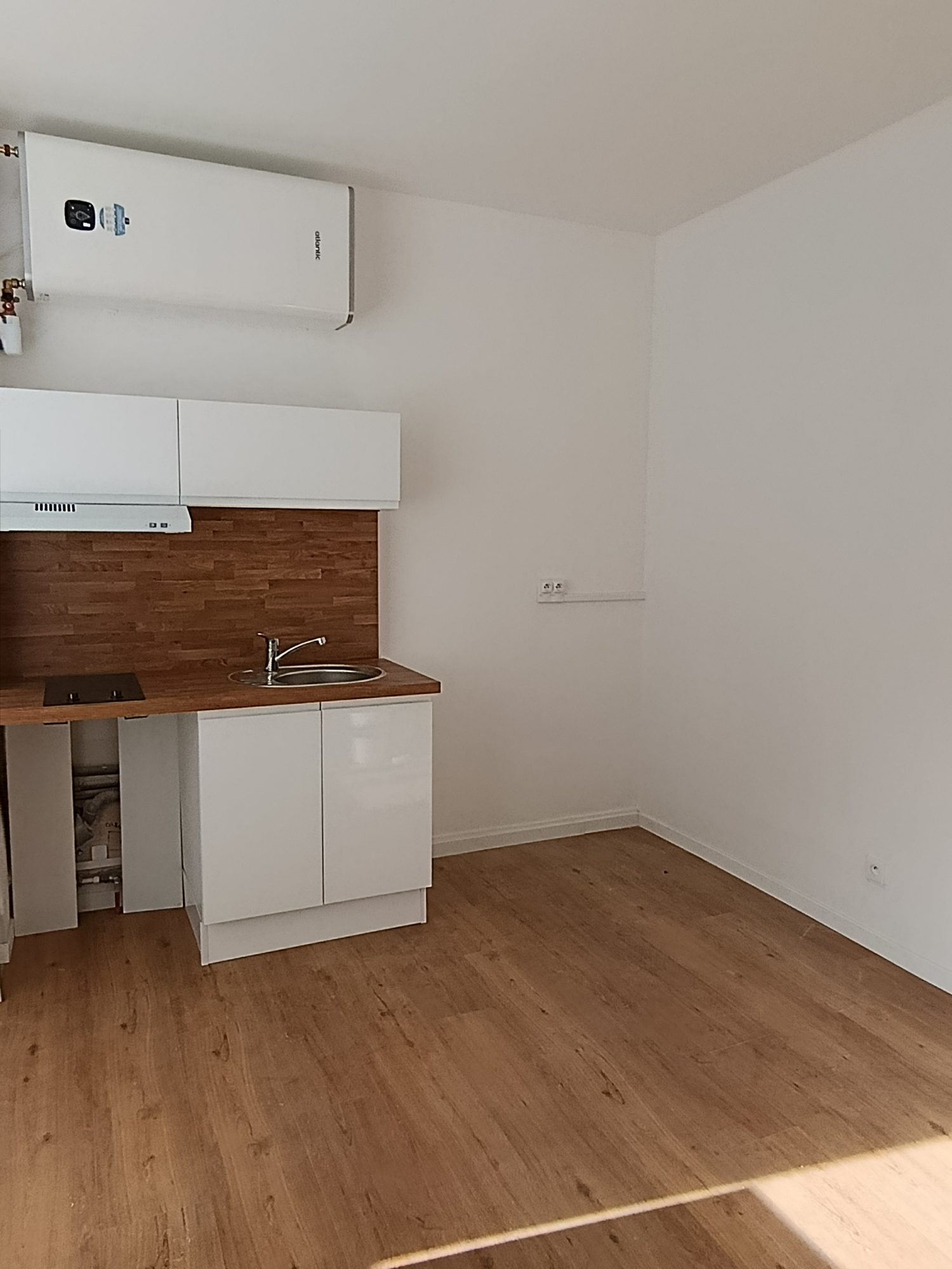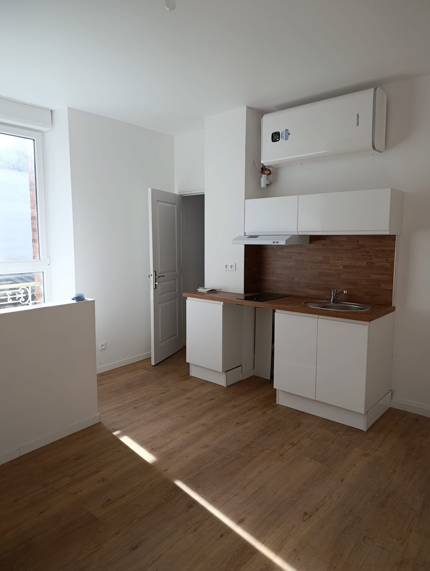 Petit studio ( 18 m²) entièrement refait à neuf composé d'une pièce de vie avec cuisine aménagée et équipée ( hotte, plaque ).