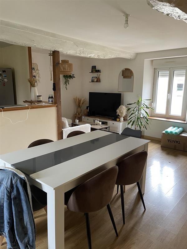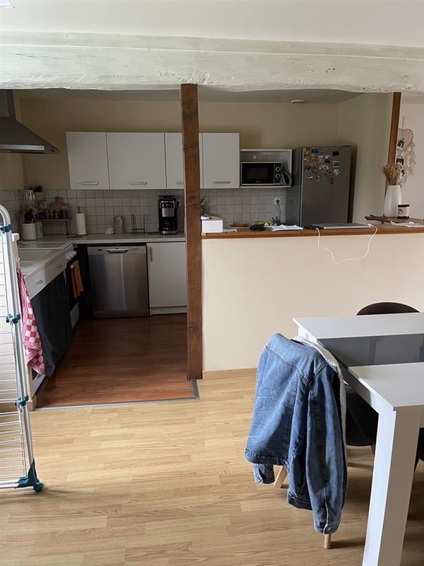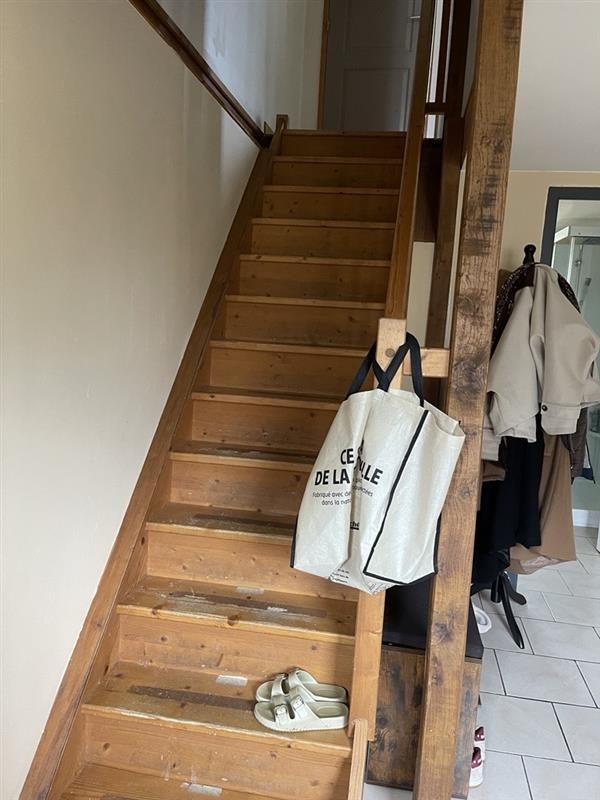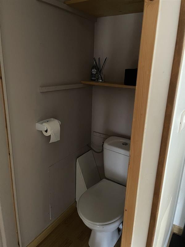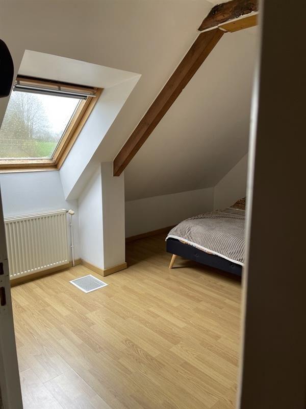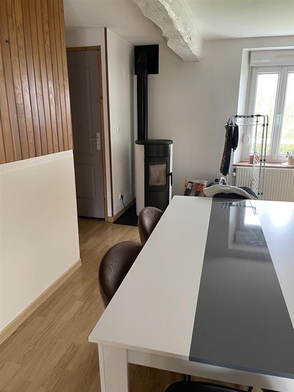 - Au 1er étage : un salon / séjour avec poêle à granulés ouvert sur cuisine semi équipée, WC