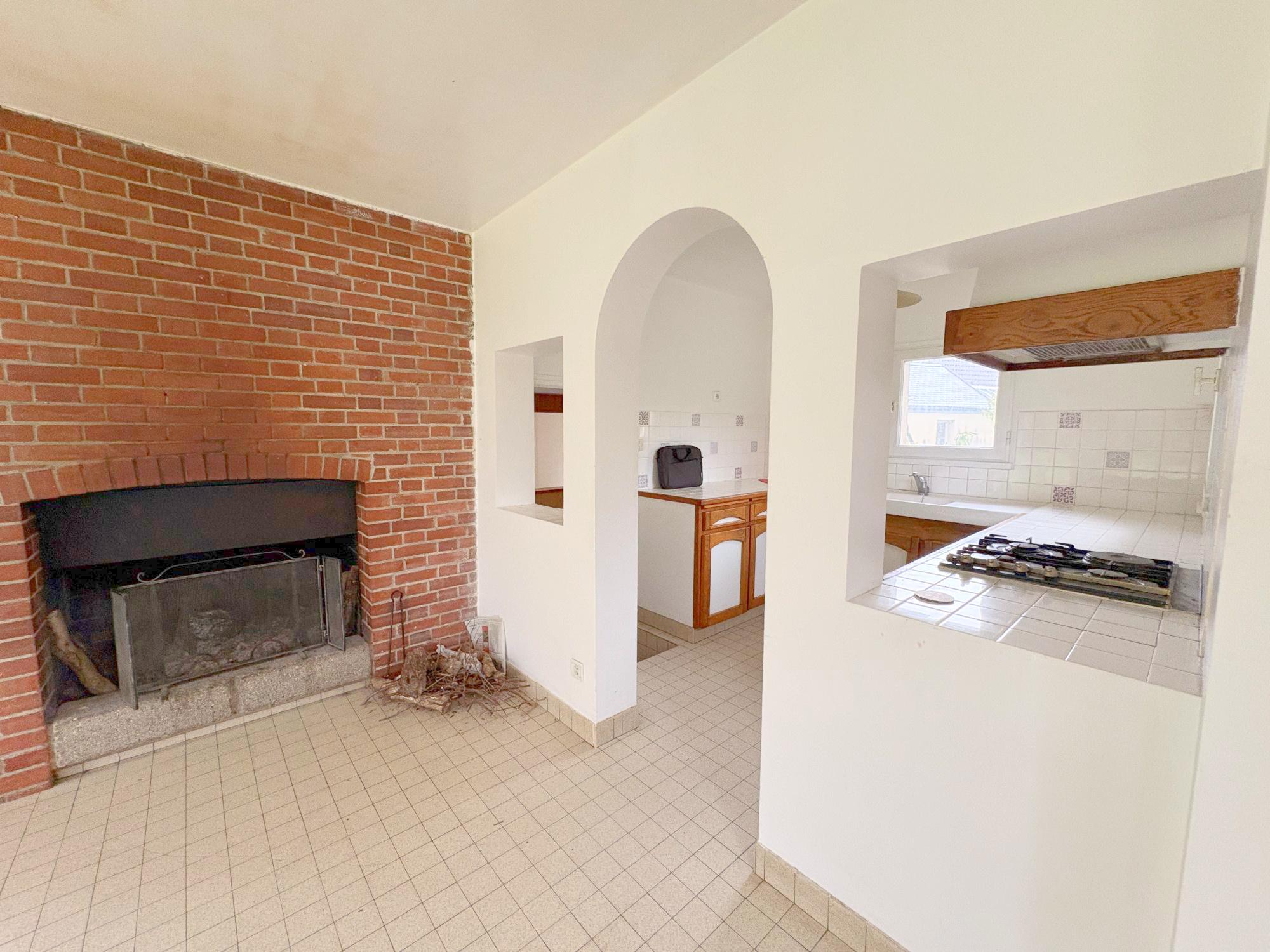 Au rez-de-chaussée: entrée par une véranda, salon-séjour avec cheminée, cuisine ouverte sur séjour, chambre avec dégagement et salle d'eau, petit bureau avec placard avec coin chaufferie et W.C.