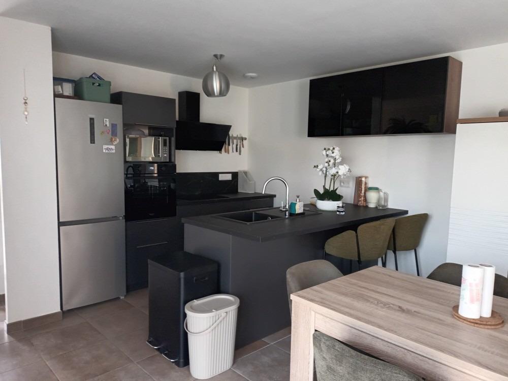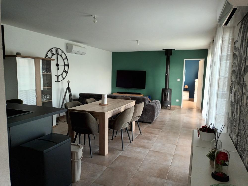 (réfrigérateur, plaques, four, lave-vaisselle), 3 chambres dont une avec dressing.Ce bien est très confortable ; volets roulants centralisés, clim réversible, chauffage électrique performant, poêle à bois, tout à l'égout et fibre.