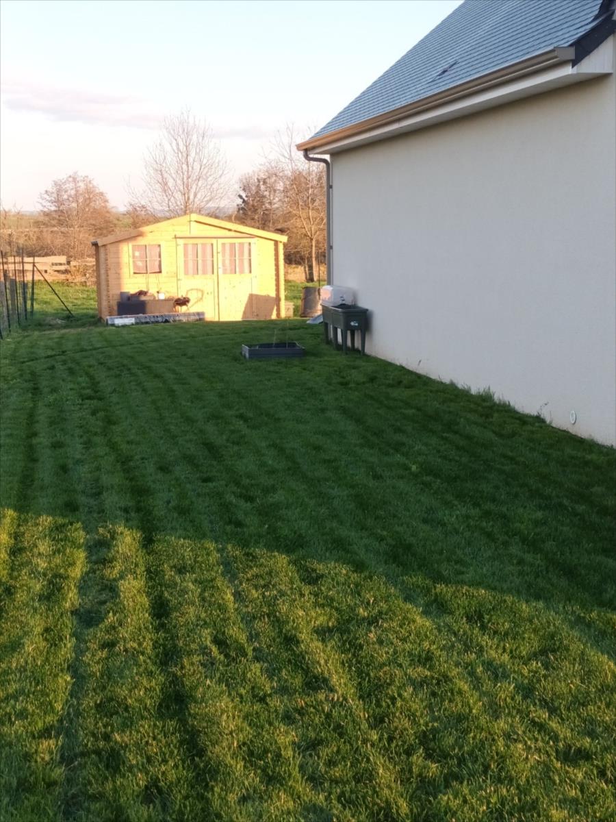 Environnement très calme en sortie de village. Le tout avec terrain clos de 1000 m2 avec abri de jardin en bois.