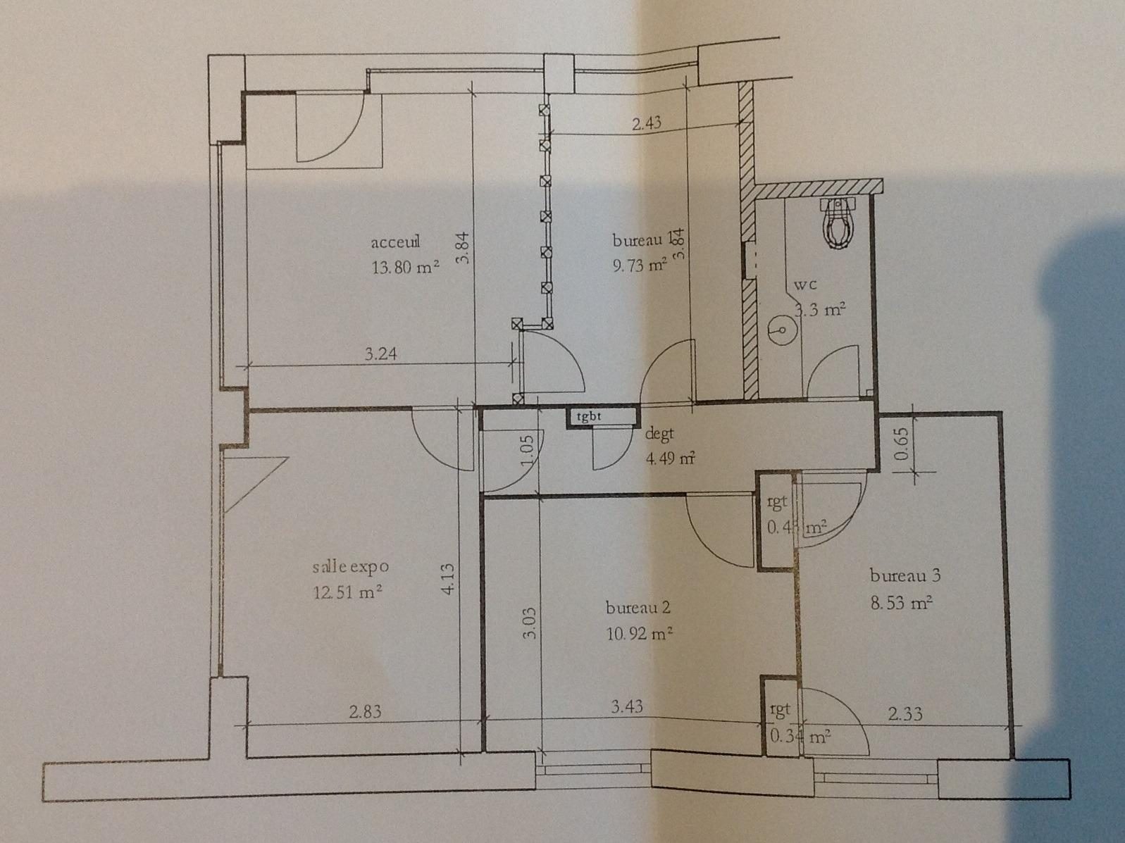 4 bureaux, une salle d'exposition (ou grand bureau), wc avec lavabo.