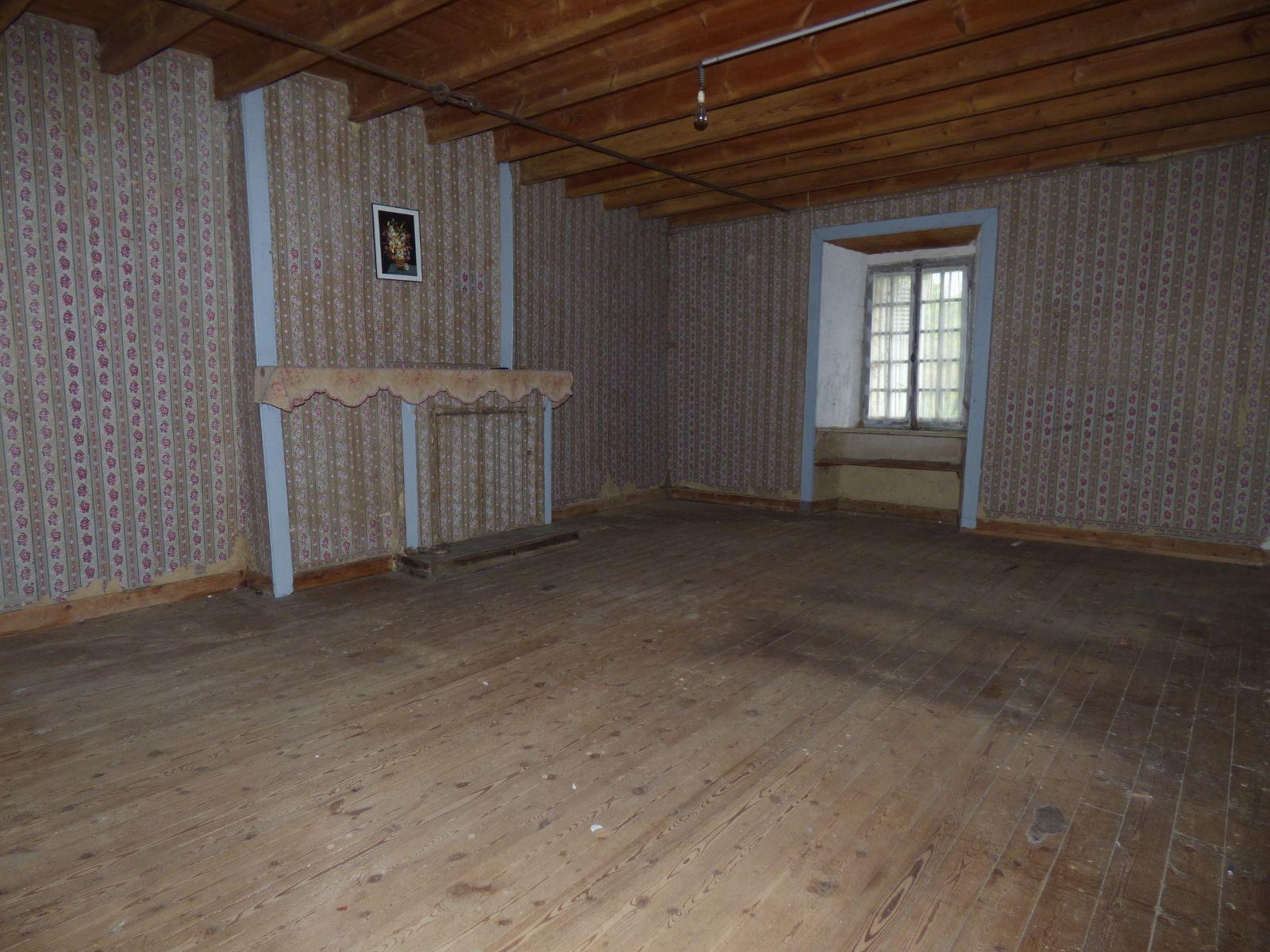 Au rez-de-chaussée : entrée, séjour avec poêle à bois, WC avec lavabo, cuisine, deux étables