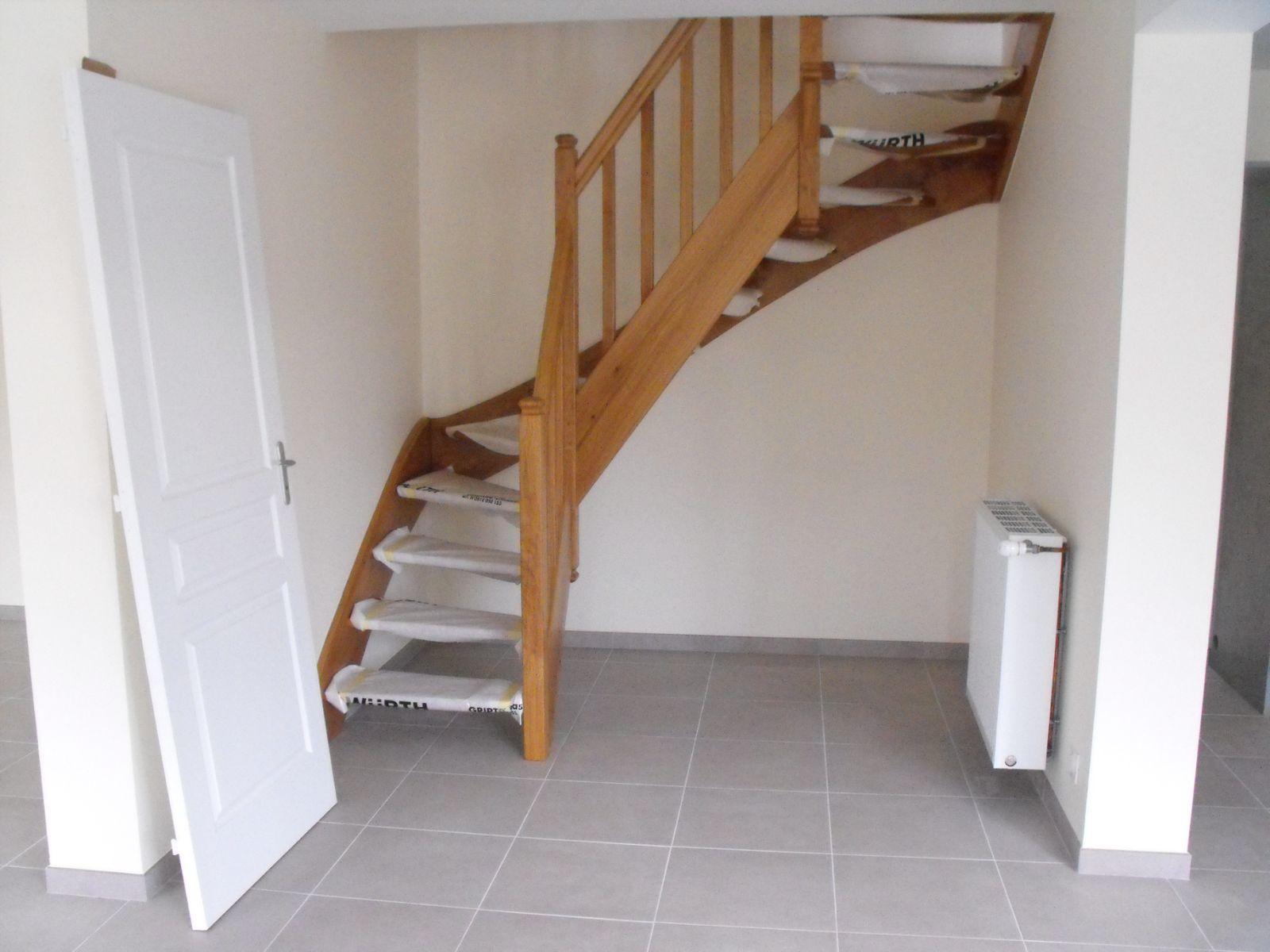 Maison comprenant : Au rez-de-chaussée : séjour-entrée-cuisine aménagée avec hotte et plaques électriques, chaufferie, WC, salle d'eau A l'étage : trois chambres Chauffage par pompe à chaleur Terrain