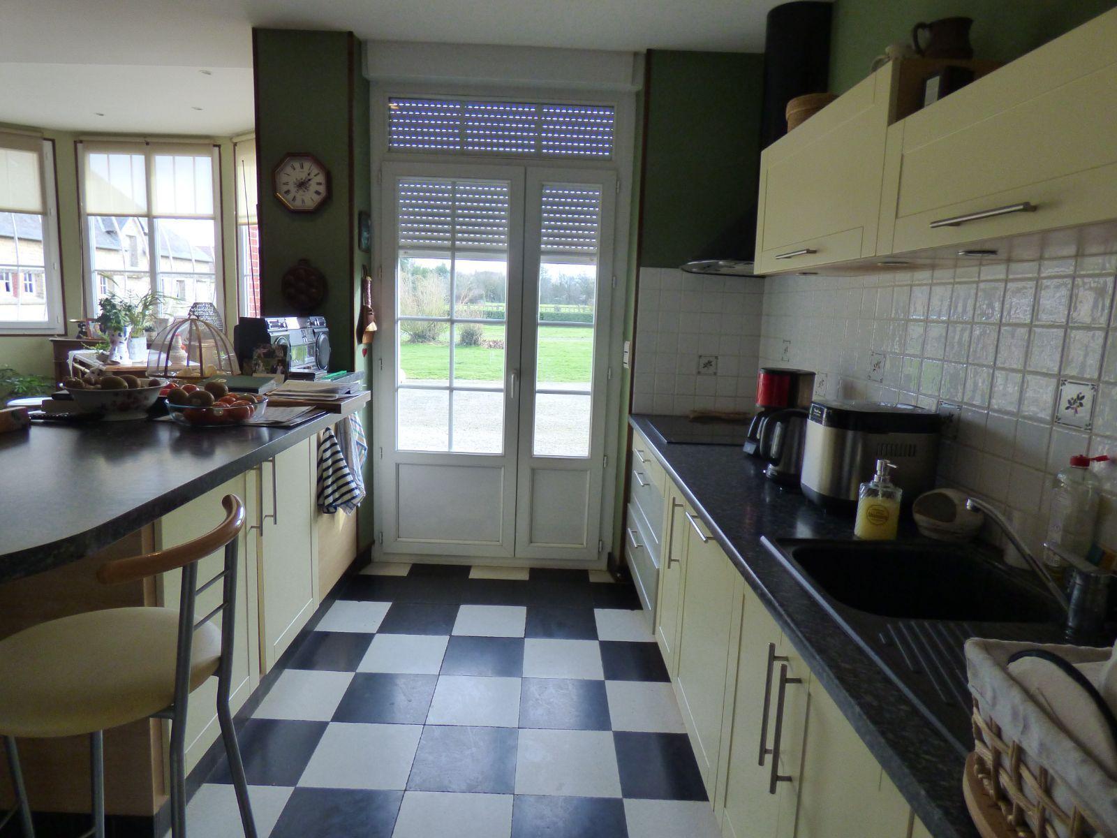 Au rez-de-chaussée : entrée, séjour-salon avec cheminée, cuisine aménagée et équipée avec cheminée, couloir, cellier, bureau, deux garages ouverts, toilettes, laiterie-chaufferie, dégagement.