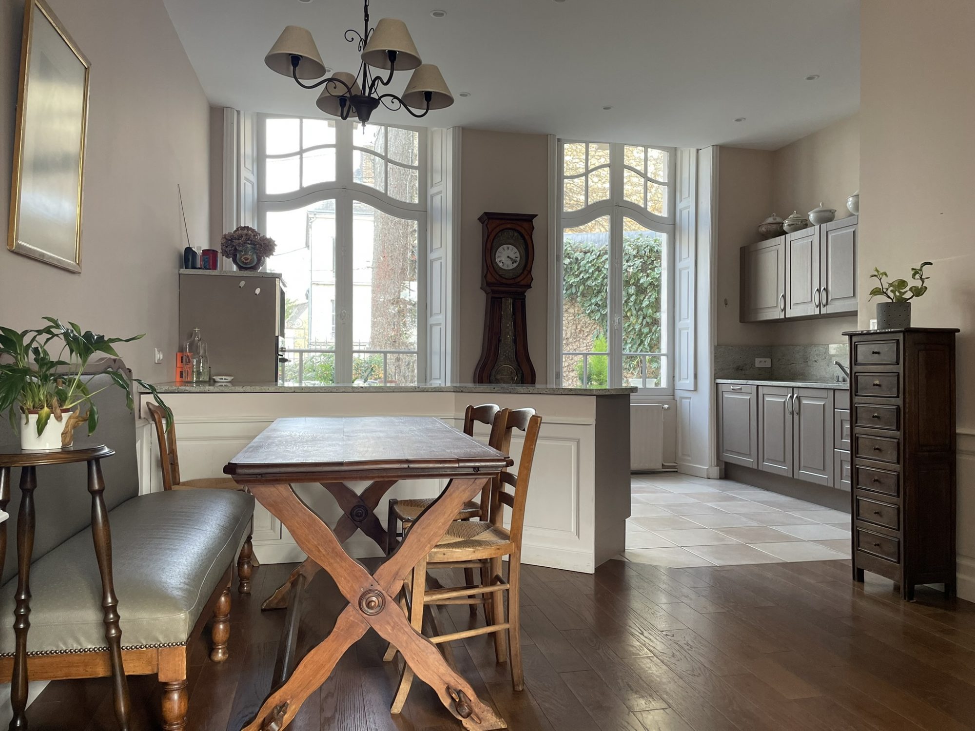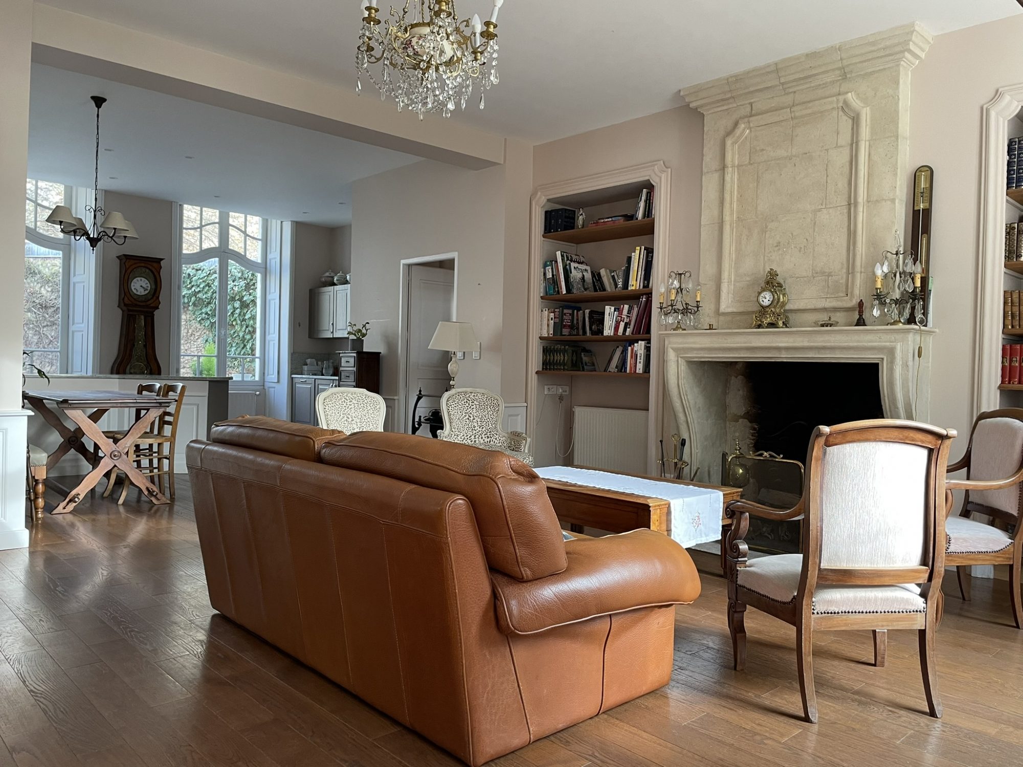 Magnifique propriété du 18ème siècle au cœur de la ville de MORTAGNE AU PERCHE, entièrement rénovée. Grand et lumineux espace de vie avec cuisine aménagée ouverte sur salon avec cheminée et grand séjour, cinq chambres (dont une de plain-pied avec salle d'eau/WC), bureau, salle de bains, salle d'eau, buanderie, réserve, WC. Potentiel avec grenier sur l'ensemble. Cave voutée. Dépendance à usage de garage avec grenier. Cour pavée devant et jardin clos de murs sur l'arrière.