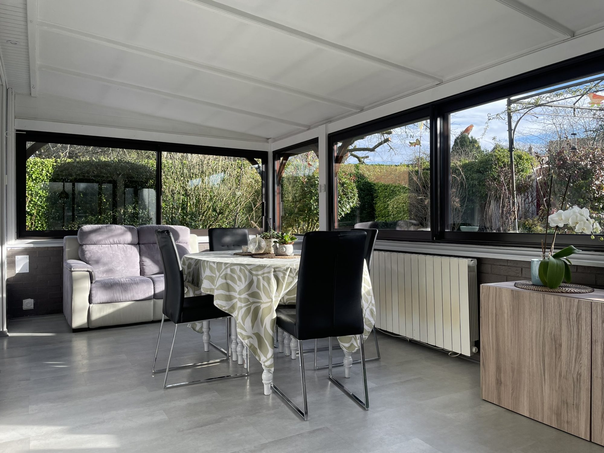 A 10 minutes de L'AIGLE, dans un village avec premiers commerces et école, charmante maison sur sous-sol dans un environnement calme. De plain-pied : entrée, bel espace de vie (57 m²) avec cuisine aménagée et équipée ouverte sur séjour avec insert à pellet et lumineuse véranda, deux chambres, salle d'eau, WC. Au sous-sol : garage, atelier, buanderie et cave. Abri voiture. Le tout sur un terrain clos et arboré d'environ 900 m².