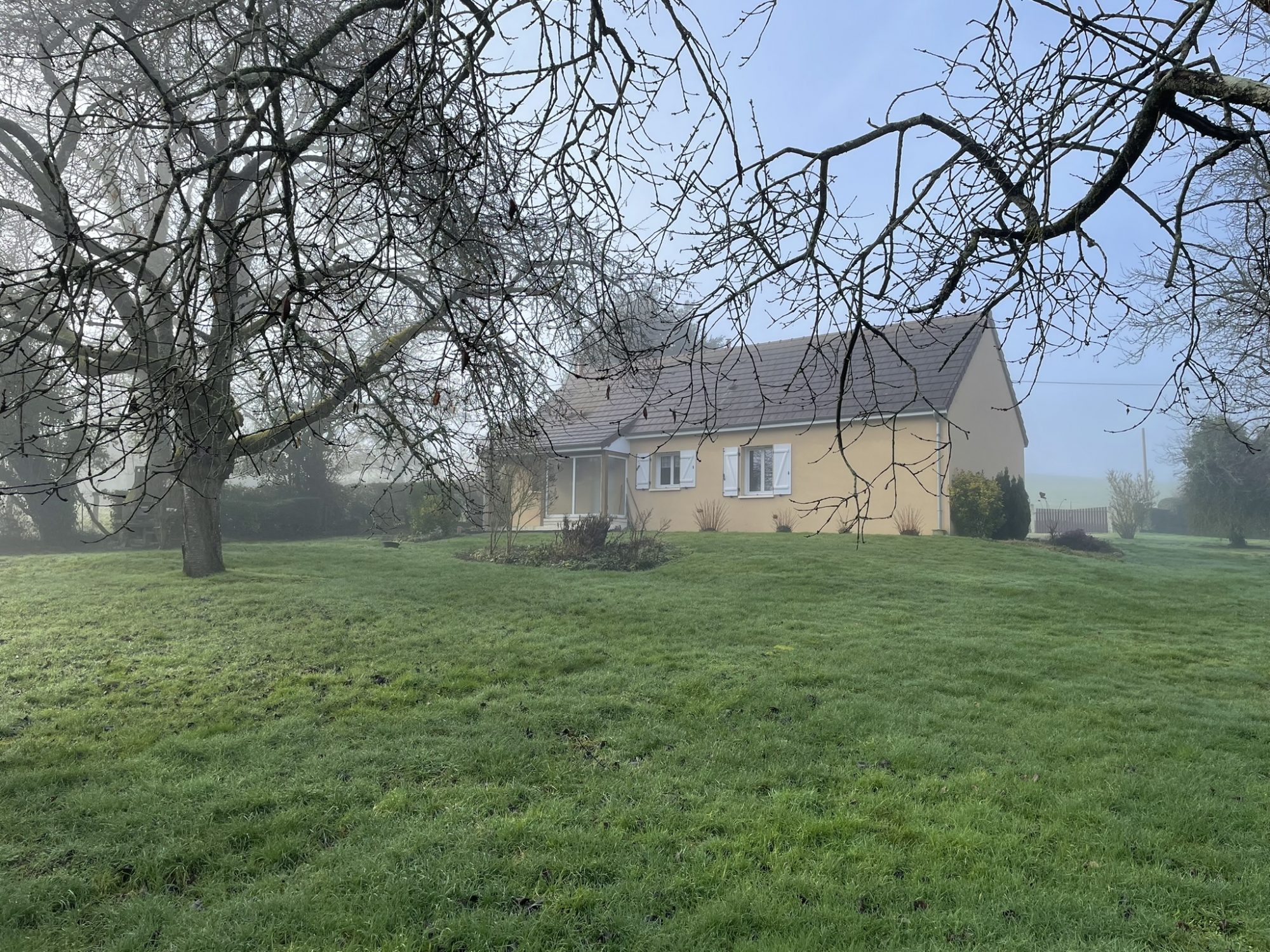 Secteur TOUROUVRE-AU-PERCHE, maison récente (2014) en campagne, dans un environnement très calme. De plain-pied : cuisine aménagée et équipée ouverte sur séjour avec poêle à pellets, deux chambres, salle d'eau, WC. Garage. Abri de jardin. Le tout sur un terrain arboré de 3800 m².