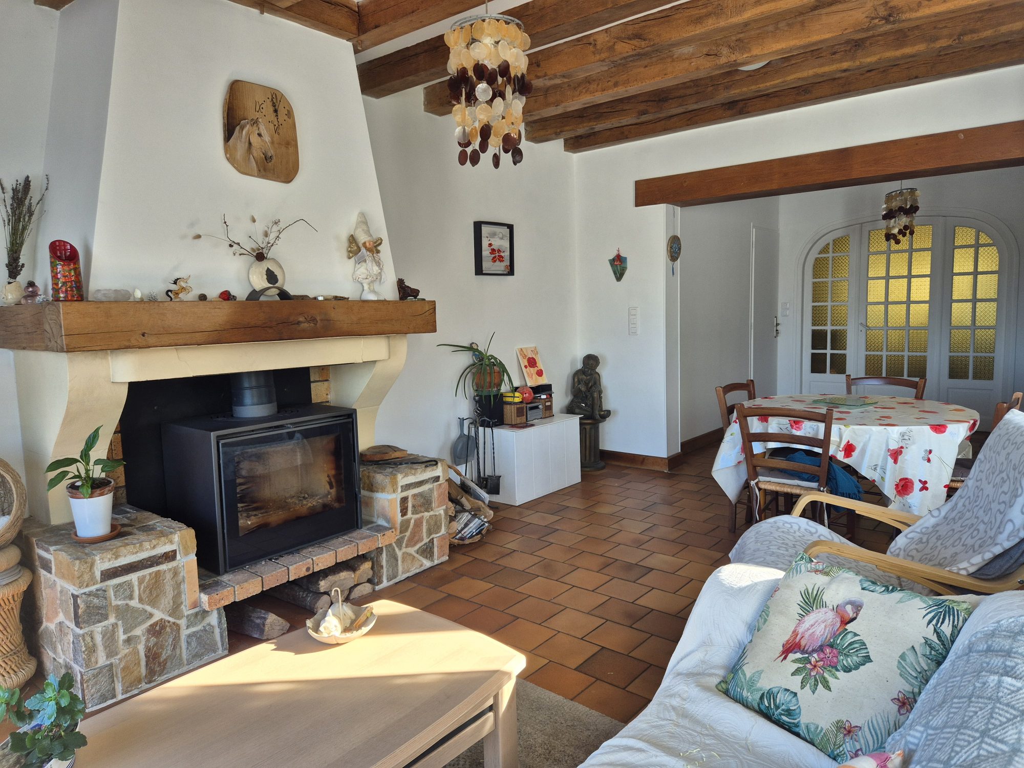 La maison a bénéficié de travaux de rénovation énergétique comprenant l’installation d’une pompe à chaleur et d’un ballon thermodynamique, l’isolation des combles ainsi que le remplacement partiel des menuiseries, contribuant à l’amélioration de sa performance énergétique et de son confort.