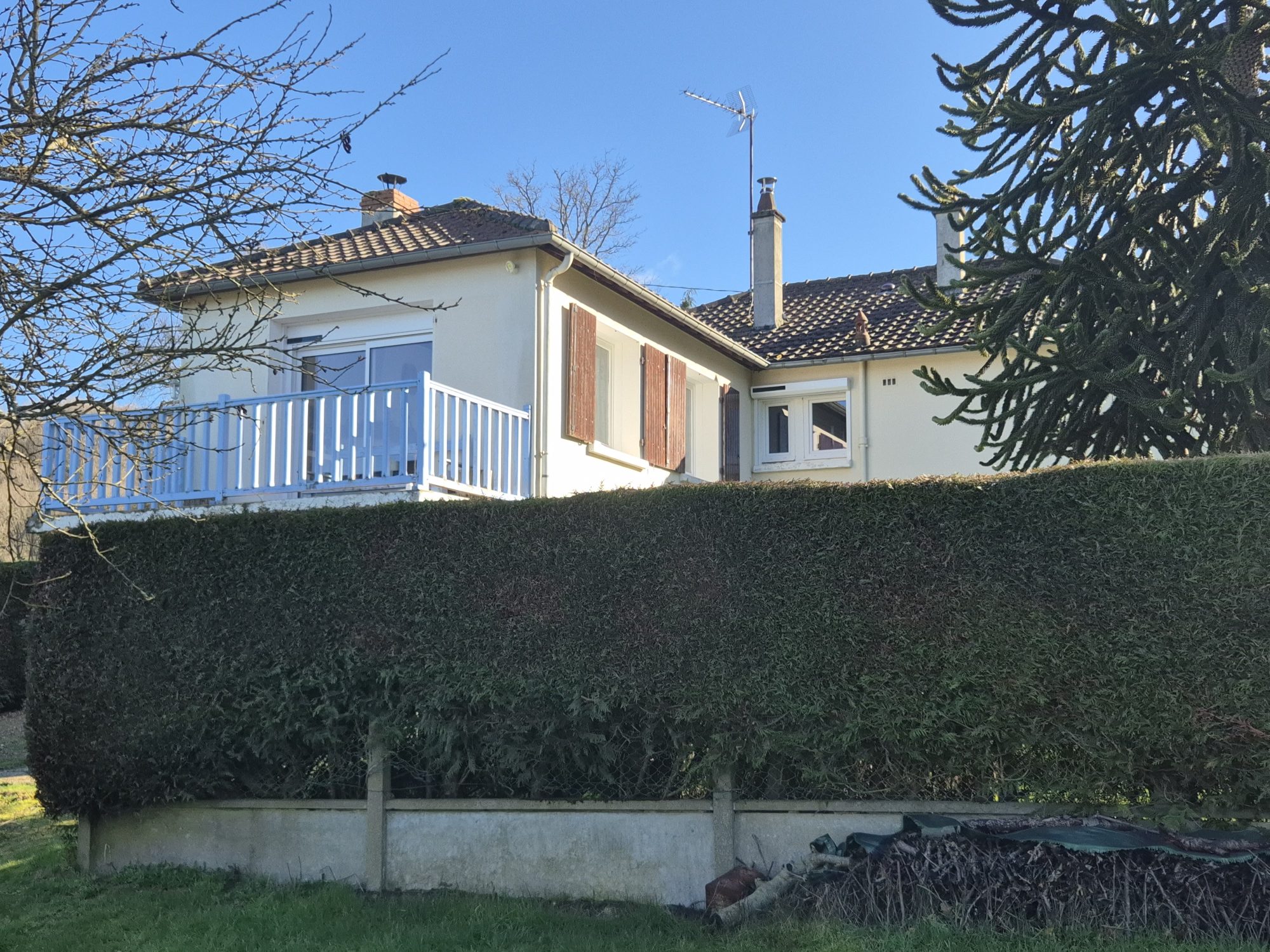 La propriété bénéficie d’une vue dégagée sur l’environnement alentour, offrant un cadre de vie agréable.