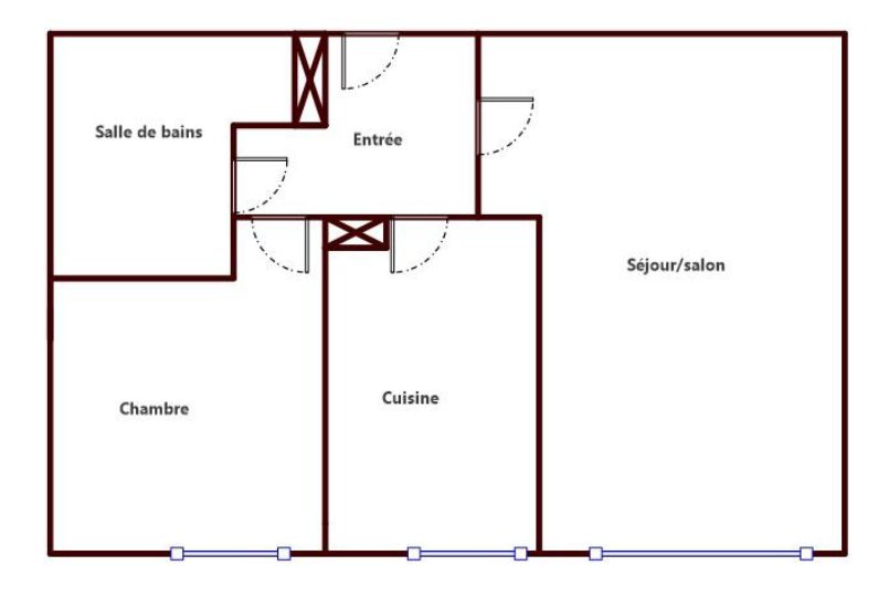 Un APPARTEMENT avec ascenseur situé au deuxième étage comprenant : entrée, dégagement, salle de bains avec wc, cuisine, une chambre, un séjour.