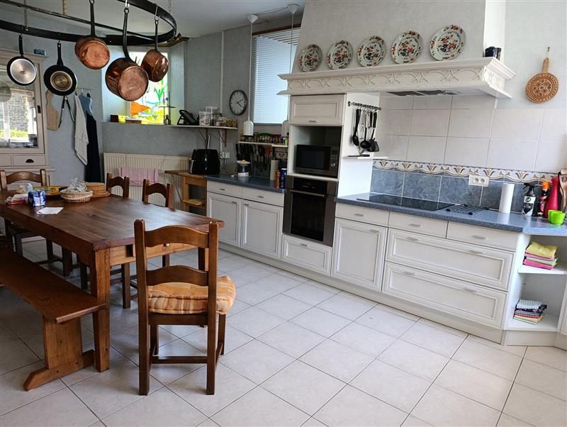 Au rez-de-chaussée : Entrée, WC avec lave-mains, grande pièce à vivre avec cuisine aménagée et équipée, salle à manger, salon/bureau, chambre parentale avec salle d'eau , arrière-cuisine/buanderie.