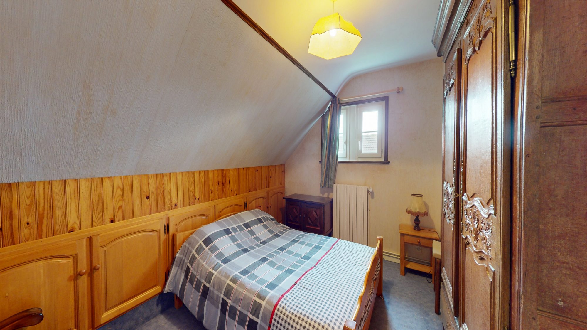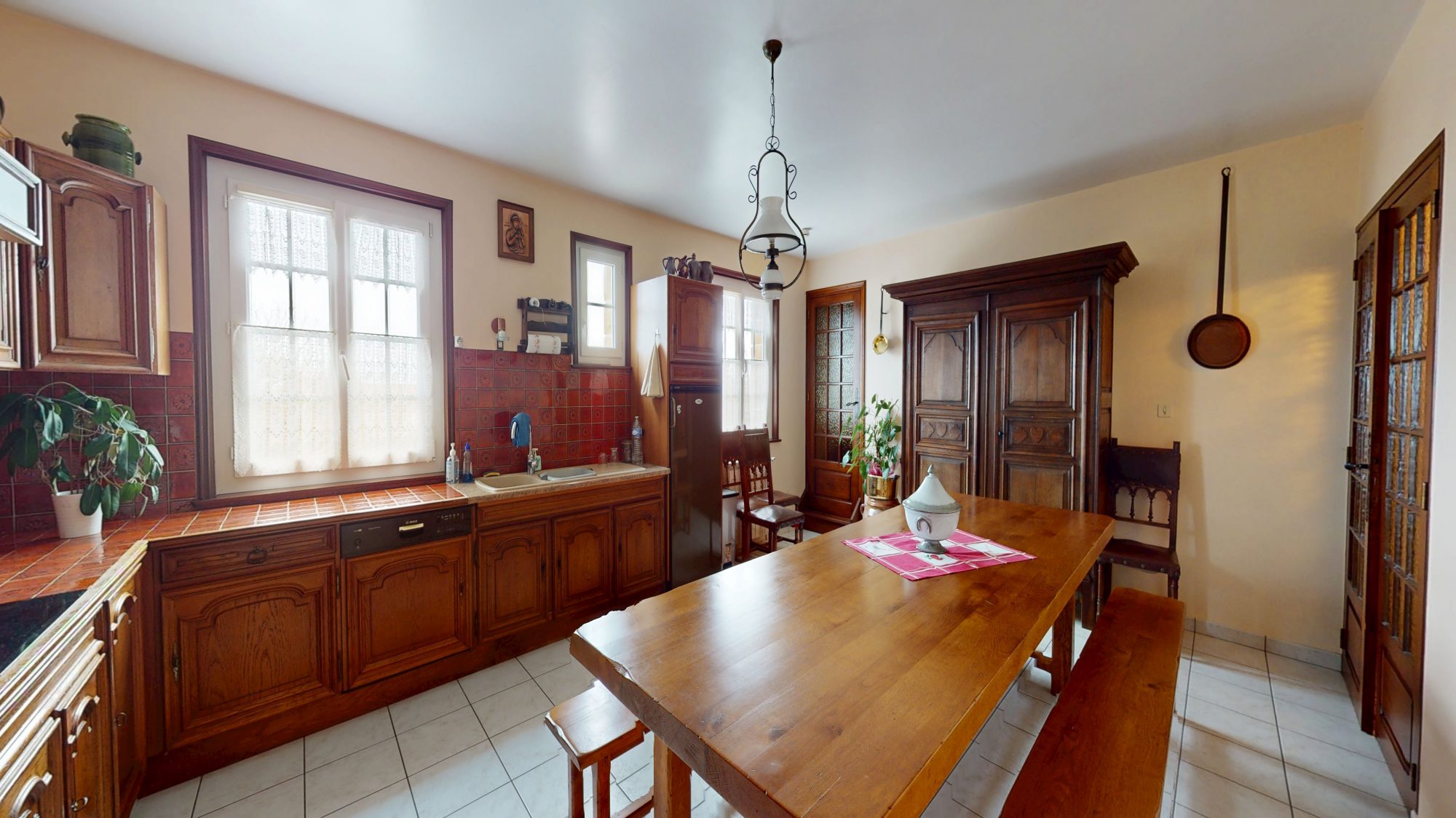 * au rez de chaussée : entrée, séjour, couloir, deux chambres, débarras, WC, salle de bains, cuisine et placards.