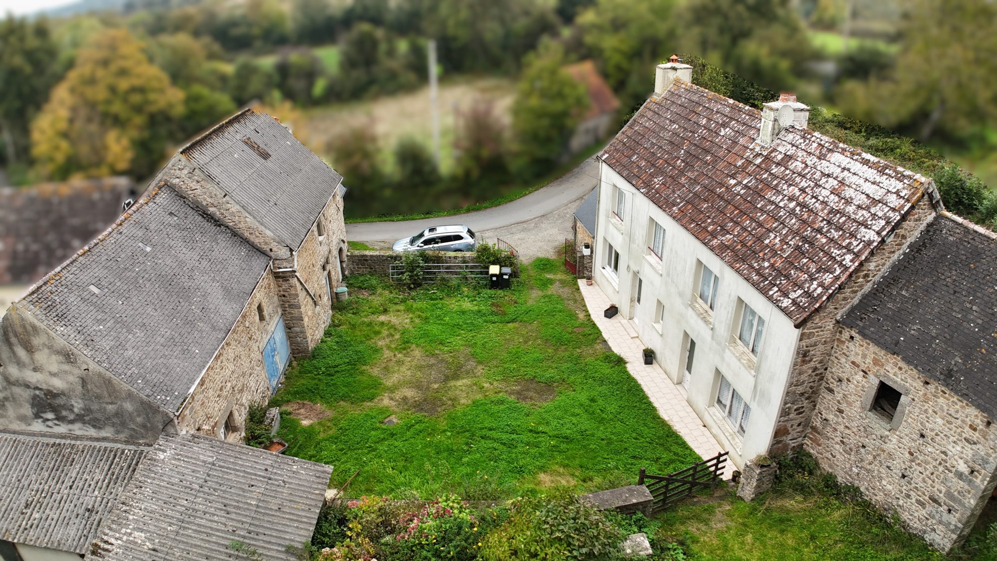 - un ensemble de bâtiment en face comprenant : étables, garages, poulailler.