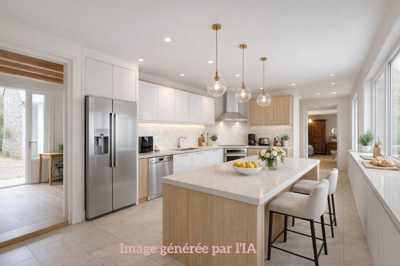 Huisseries PVC à l'avant et bois simple vitrage à l'arrière. Chauffage fuel. Assainissement individuel à mettre aux normes.