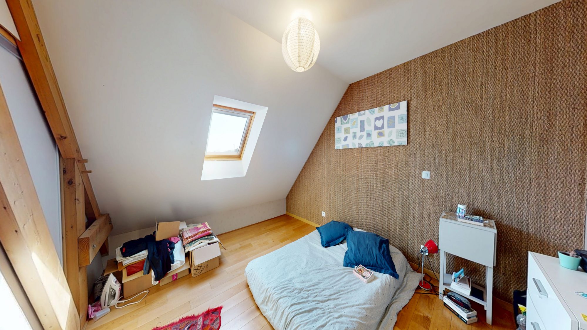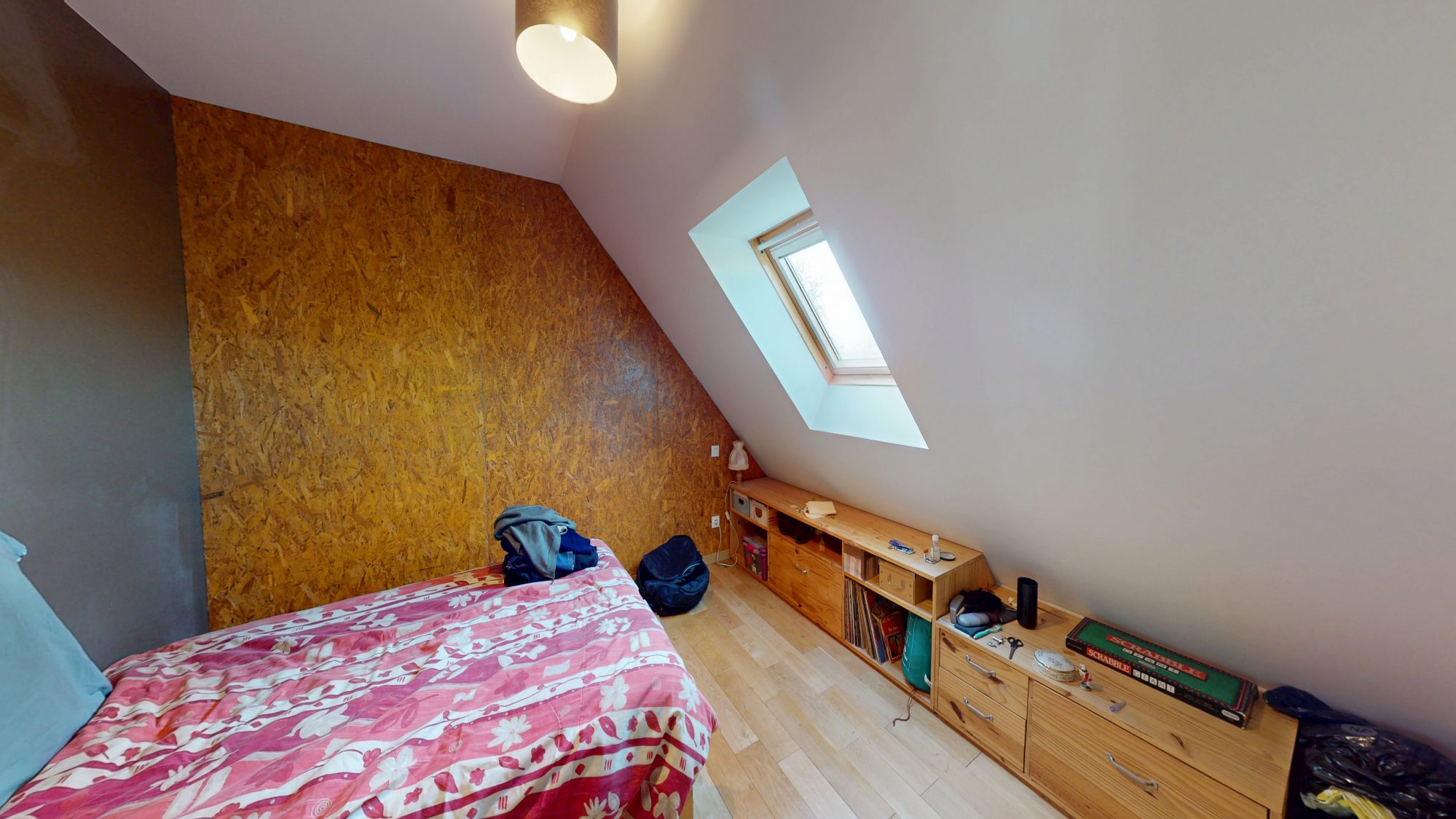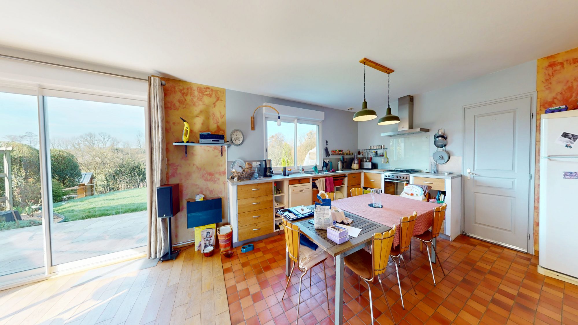 - au rez-de-chaussée : entrée, WC, bureau, séjour-cuisine ouverte avec poêle à bois, arrière-cuisine, garage avec grenier au-dessus ;