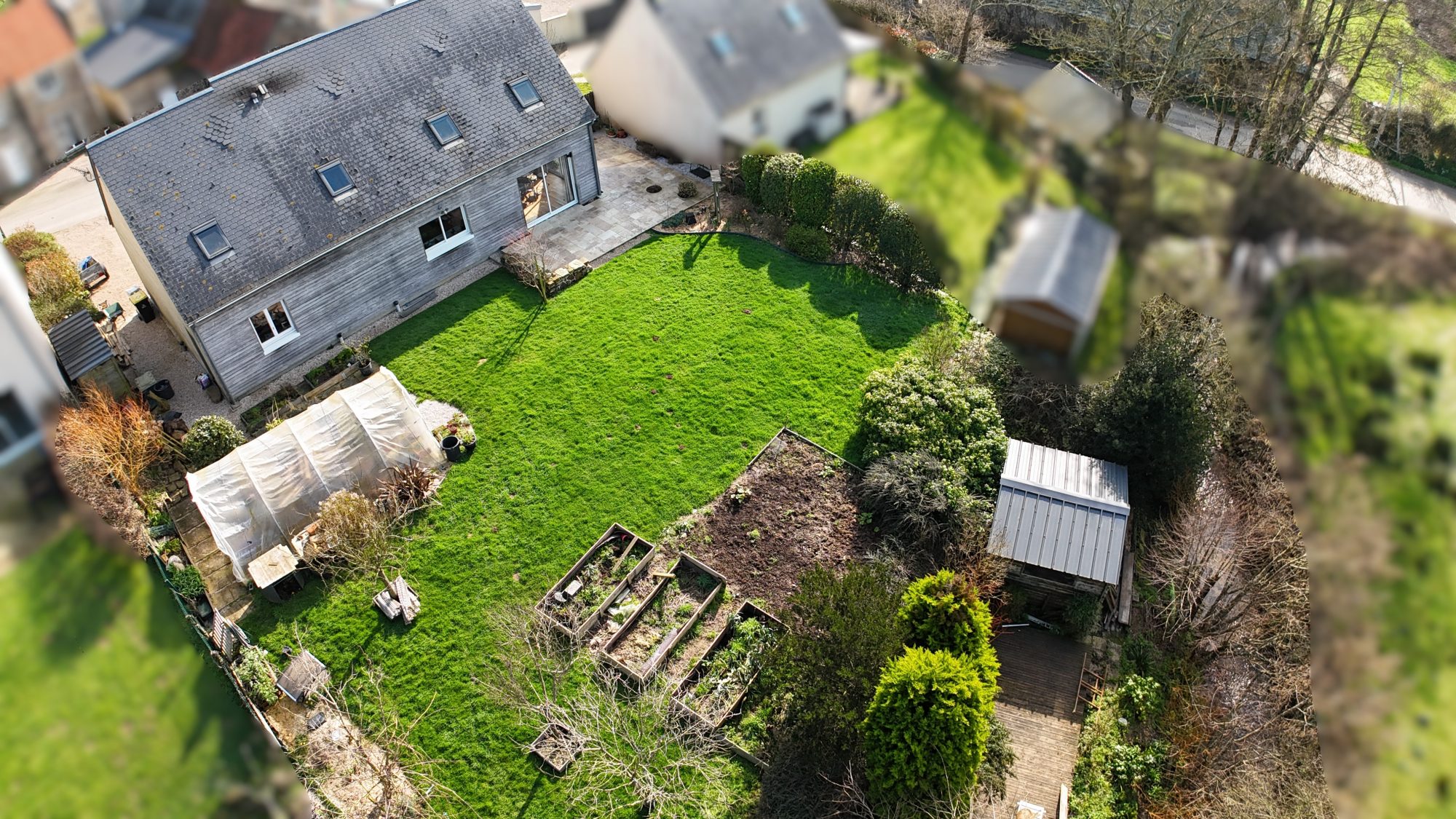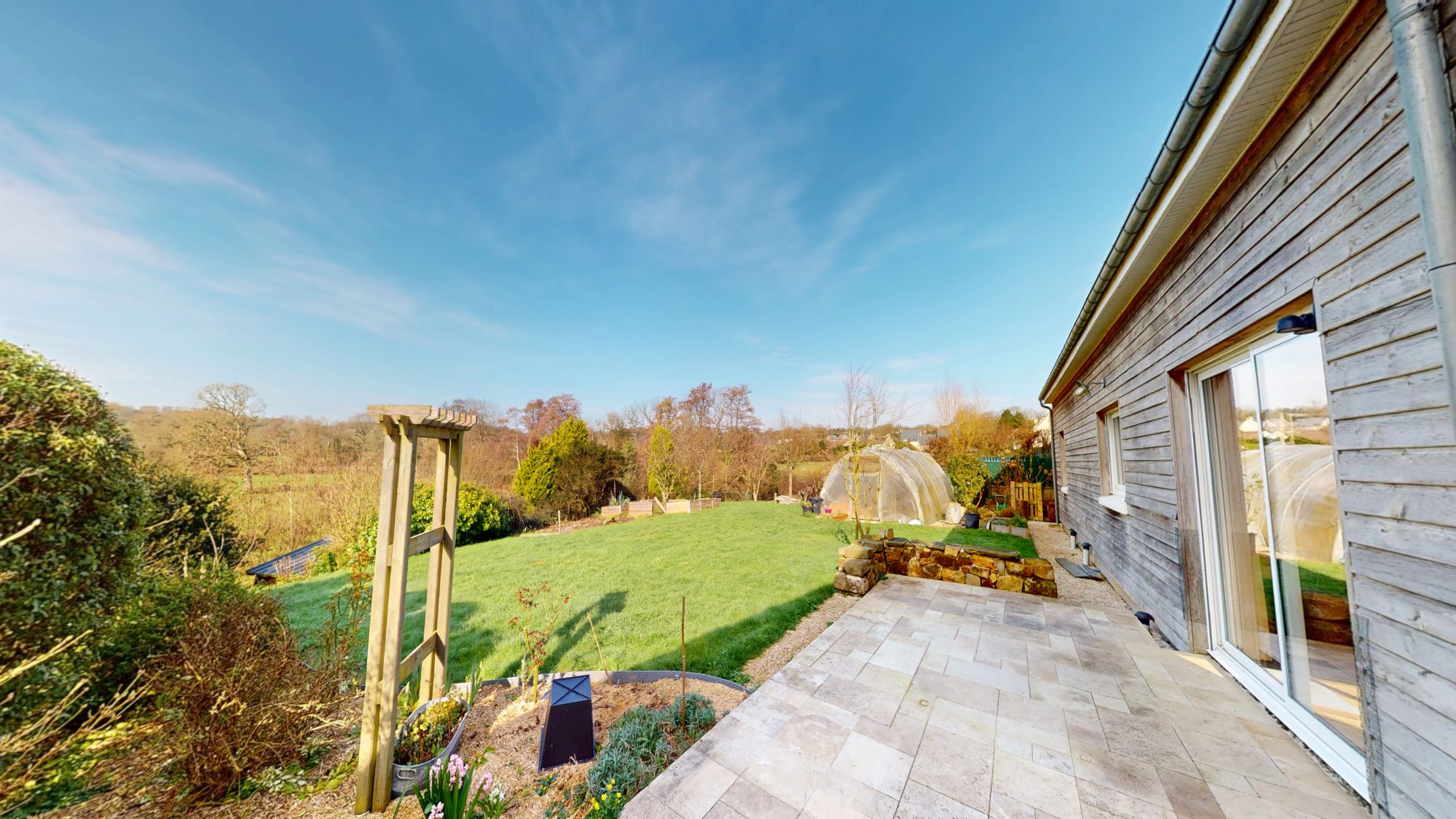 Sur un terrain de 985 m², maison en bois de 2010, comprenant :