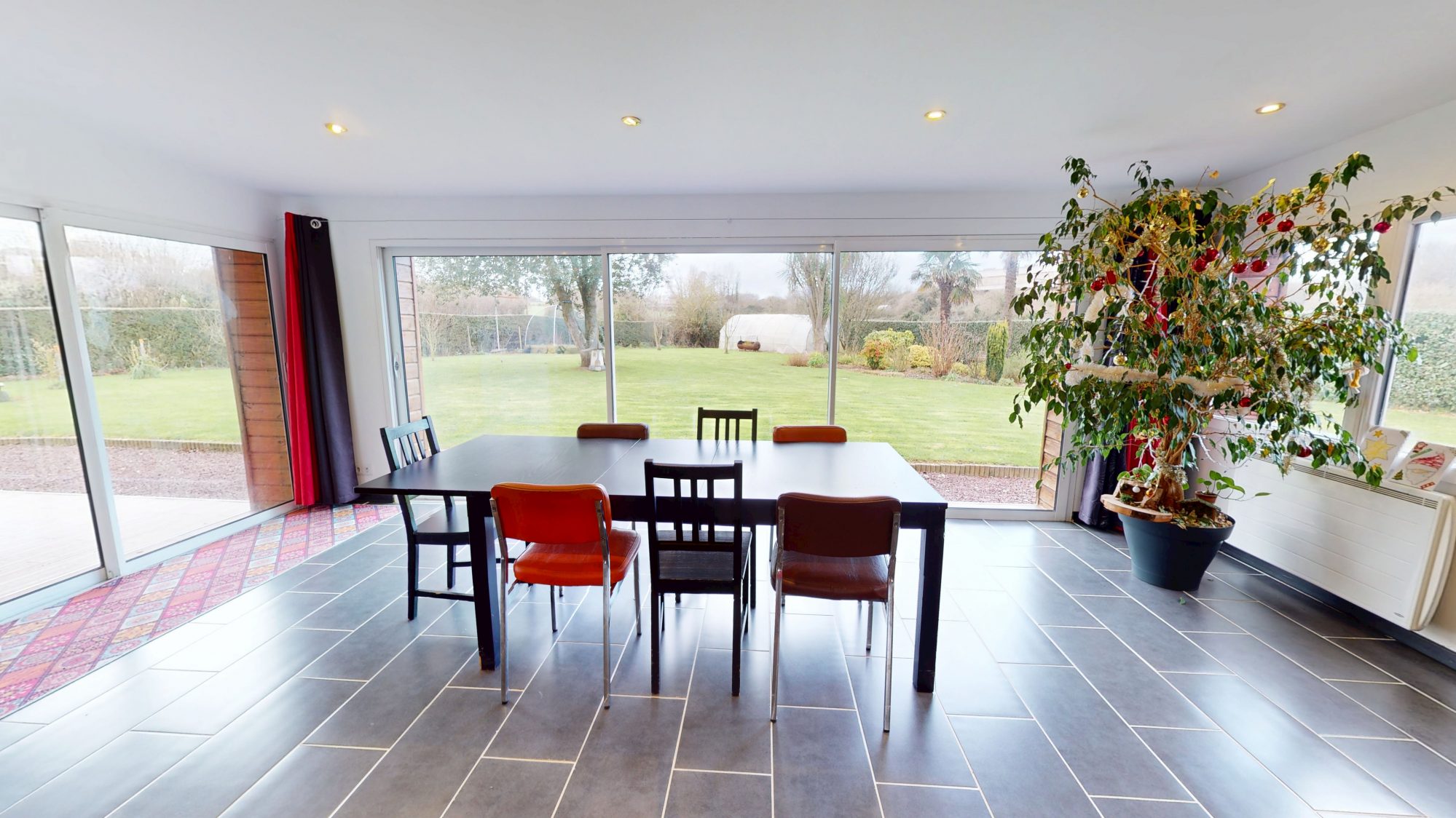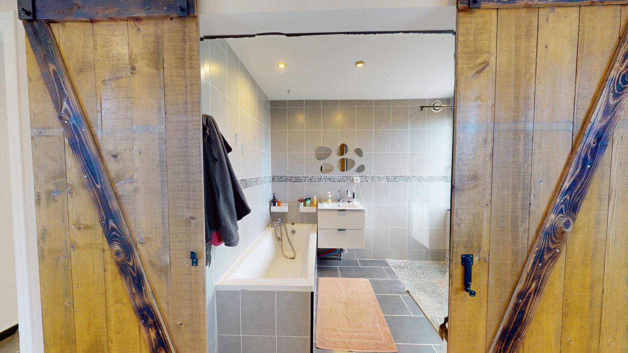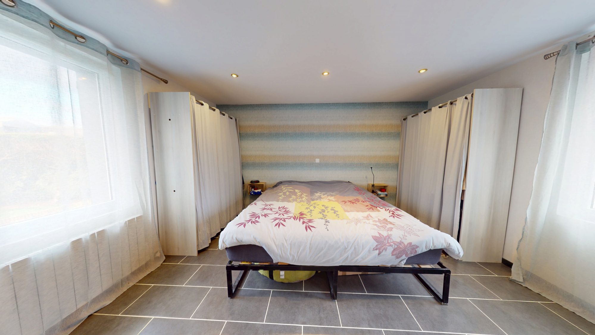 - au rez-de-chaussée : entrée, séjour avec poêle à bois et à granulés, cuisine ouverte, chambre avec salle de bains, dégagement et WC ;
