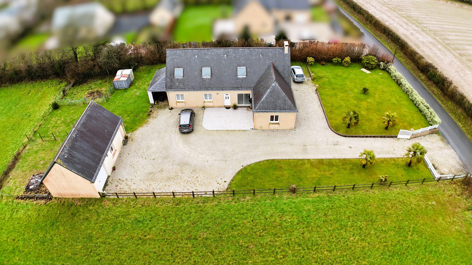Sur un terrain de 1800 m² entièrement constructible, maison de 110,44 m² comprenant :