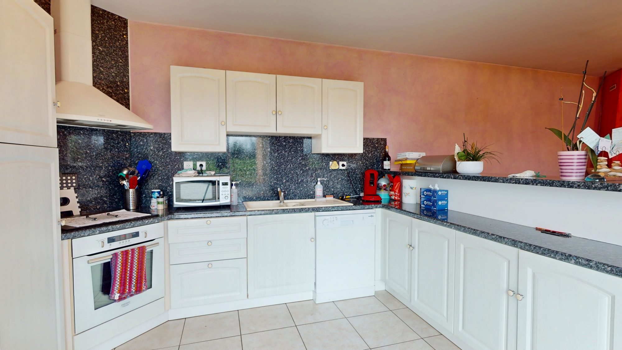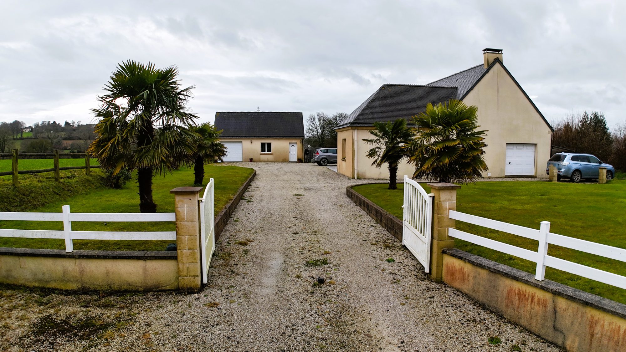 - au rez-de-chaussée : entrée avec placards, séjour avec cuisine ouverte et cheminée insert, bureau, deux chambres, salle d'eau, WC, arrière-cuisine, garage avec porte électrique ;