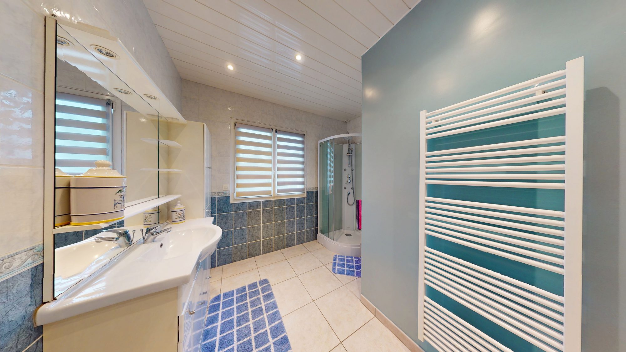 Huisseries PVC avec volets roulants électriques. Chauffage électrique. Assainissement individuel à rectifier