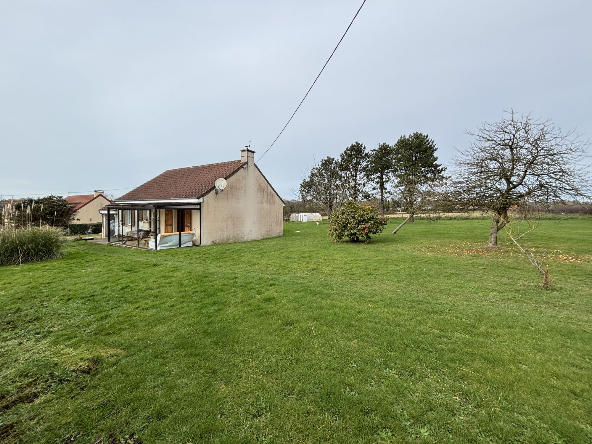 Sur un terrain de 3008 m², maison de plain-pied (louée) comprenant :