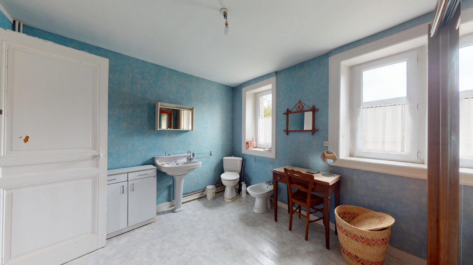 Huisseries PVC à l'avant et bois simple vitrage à l'arrière. Chauffage fuel. Assainissement individuel à mettre aux normes.