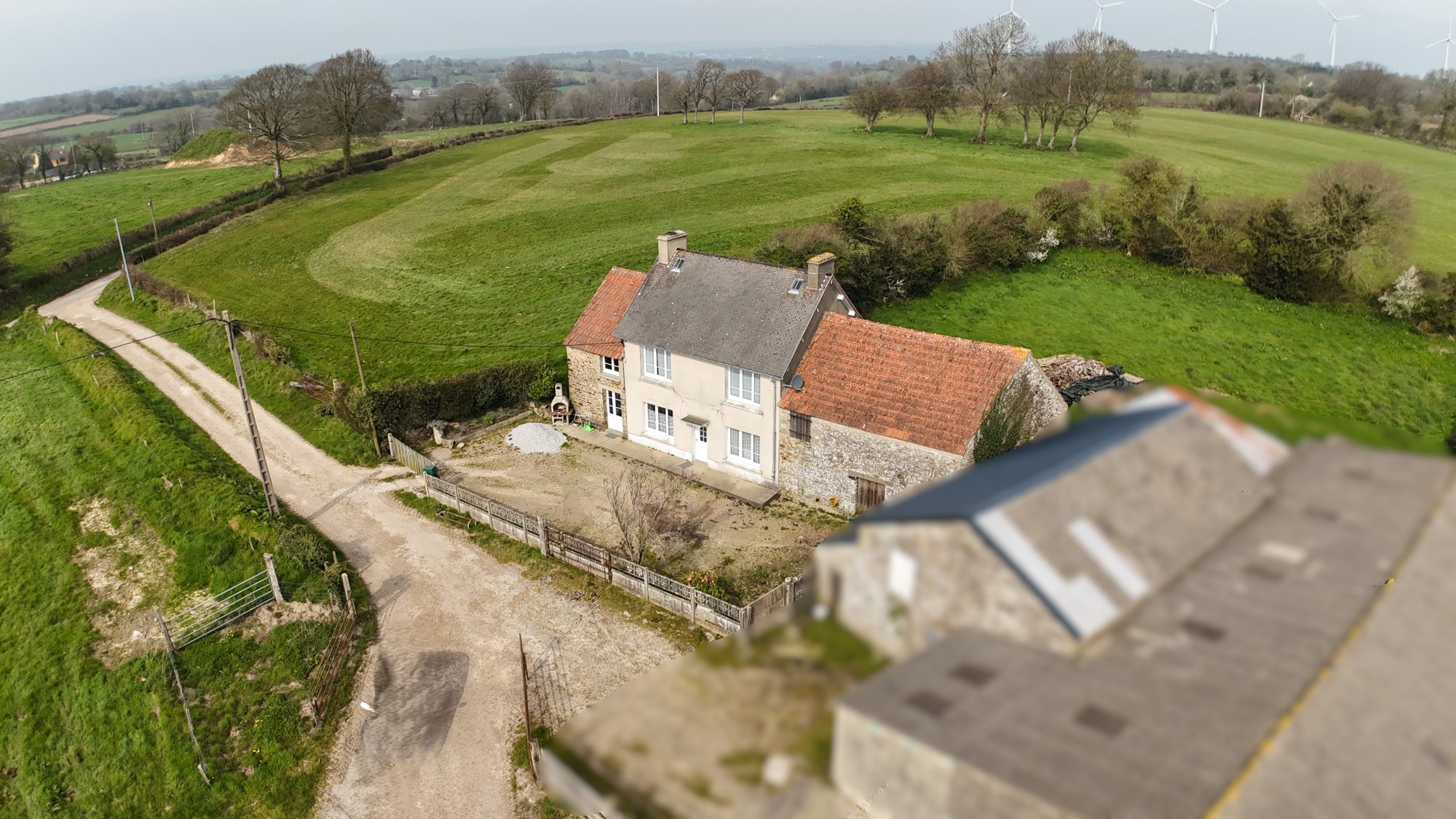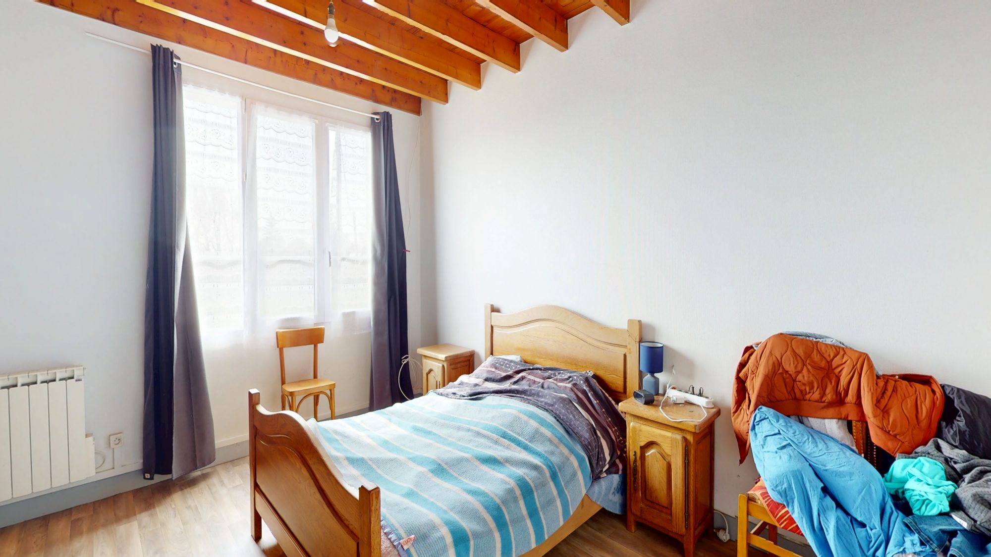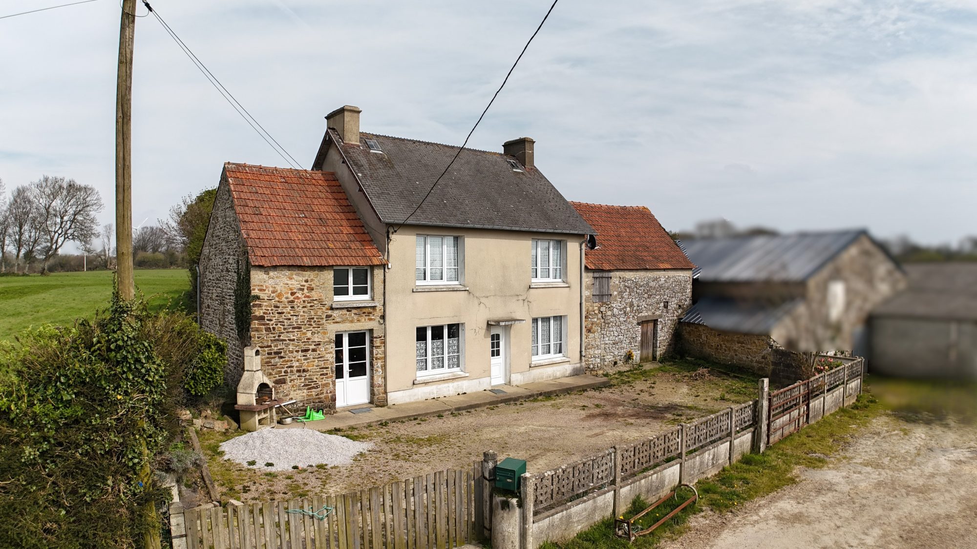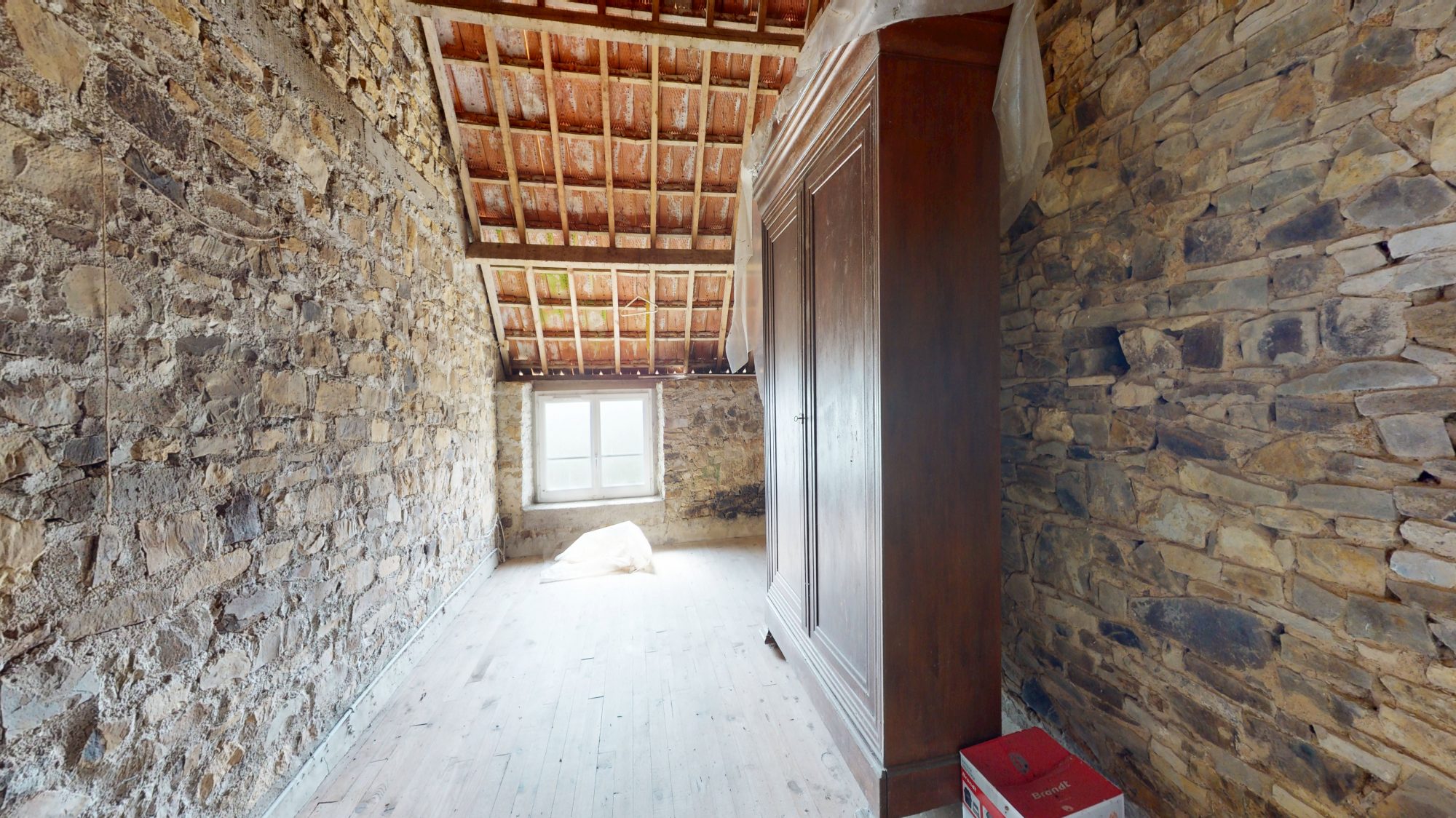 - au premier étage : palier, deux chambres, débarras, salle de bains et grenier.