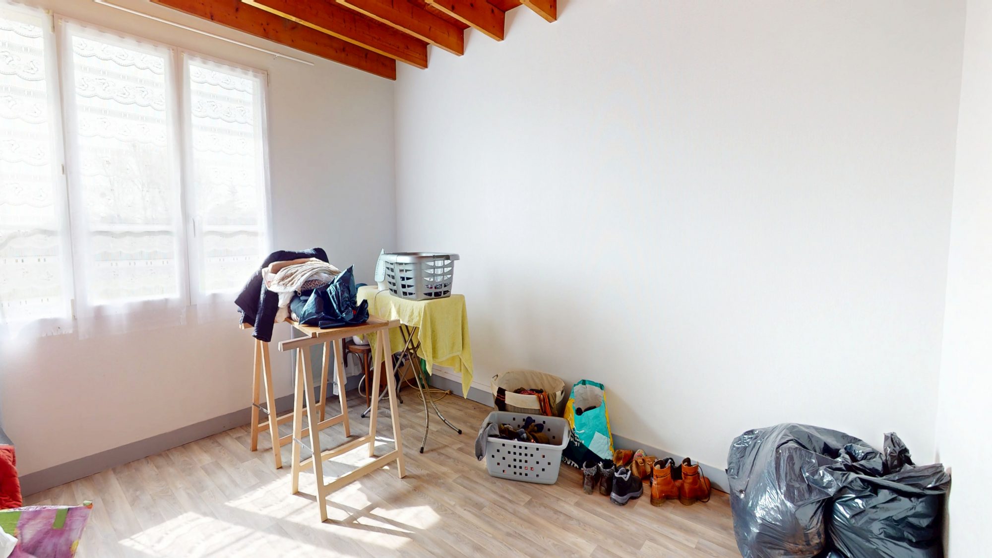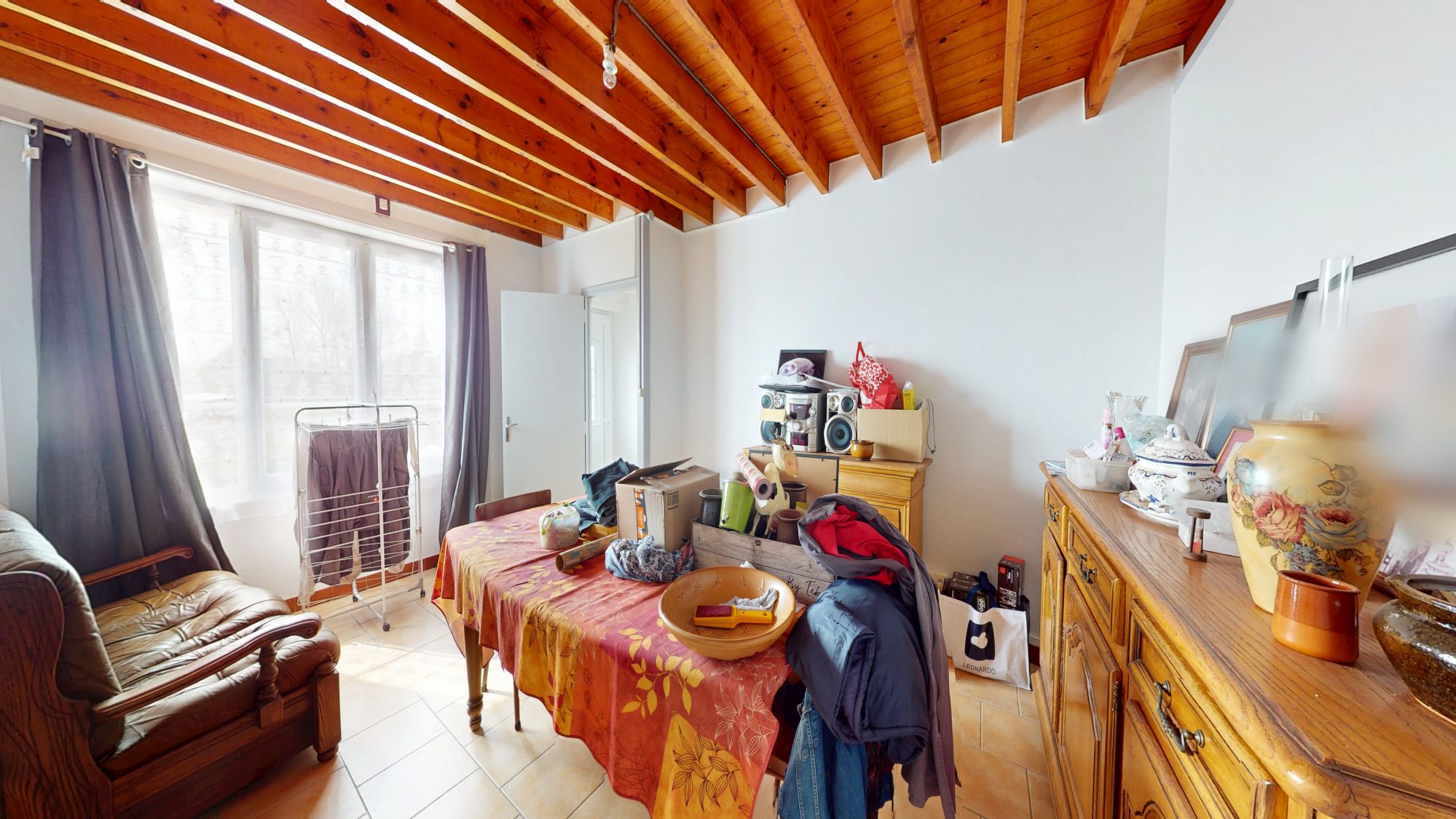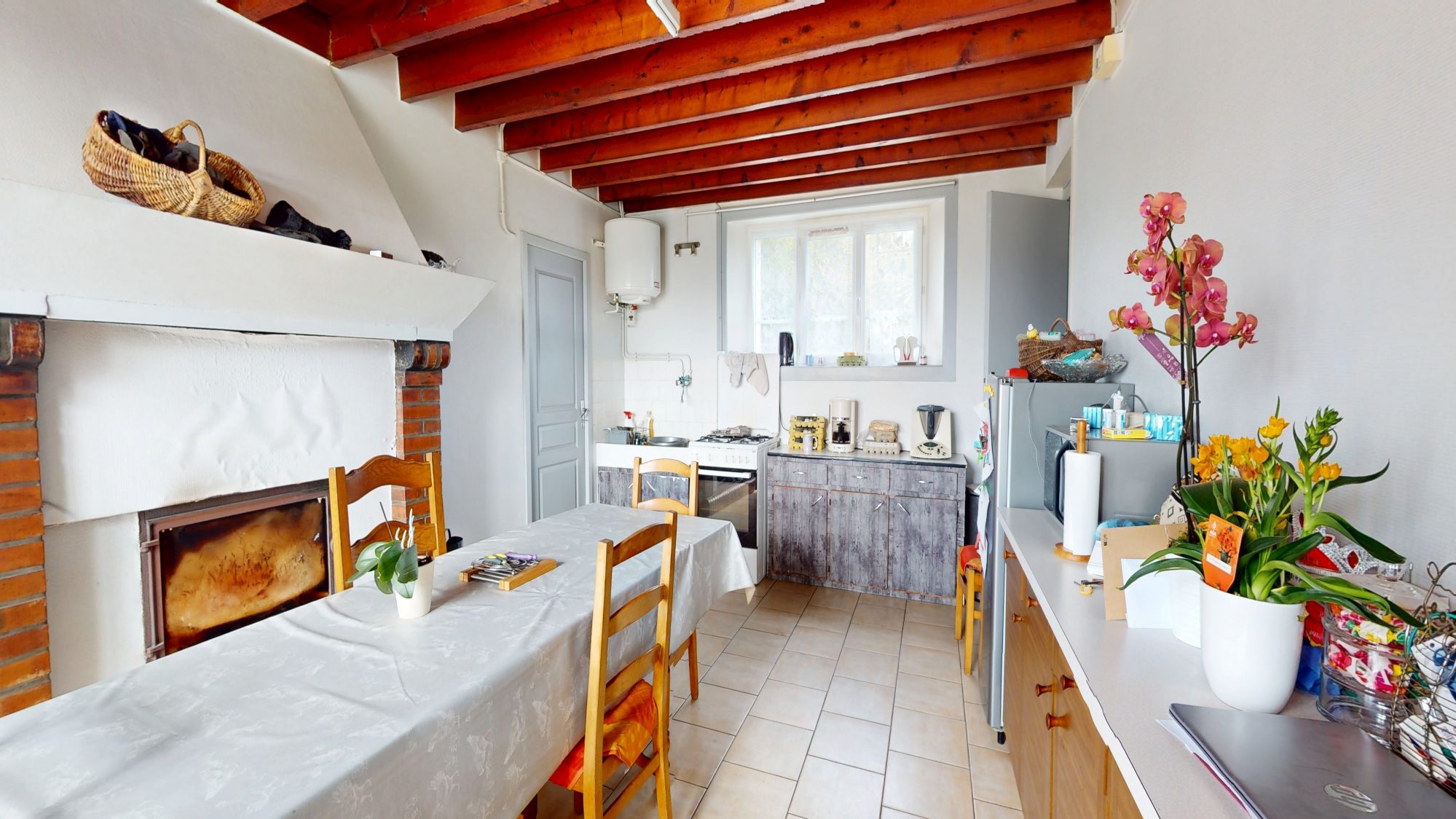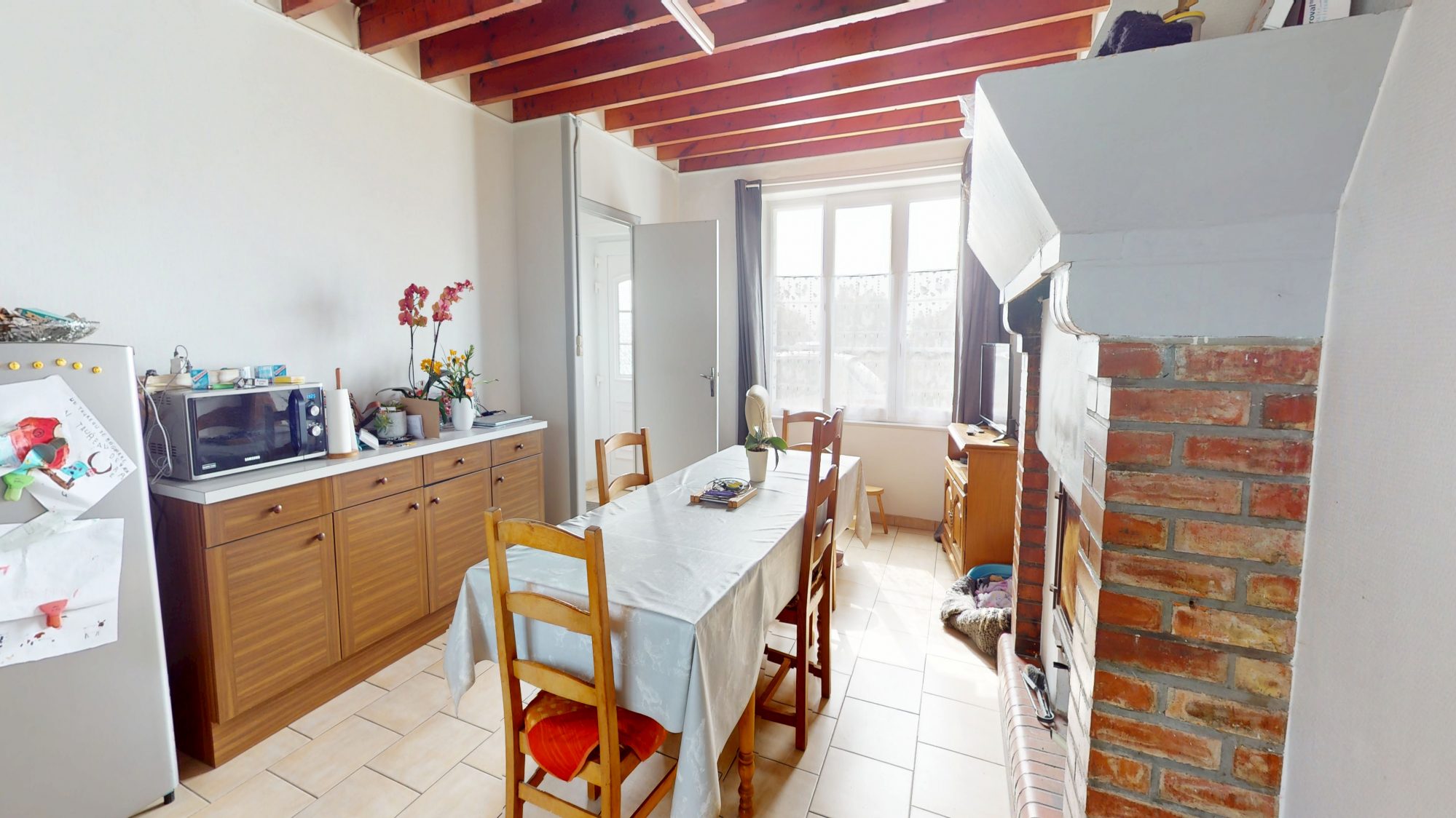 - au rez de chaussée : entrée, cuisine avec insert, buanderie, WC, séjour avec cheminée et débarras.