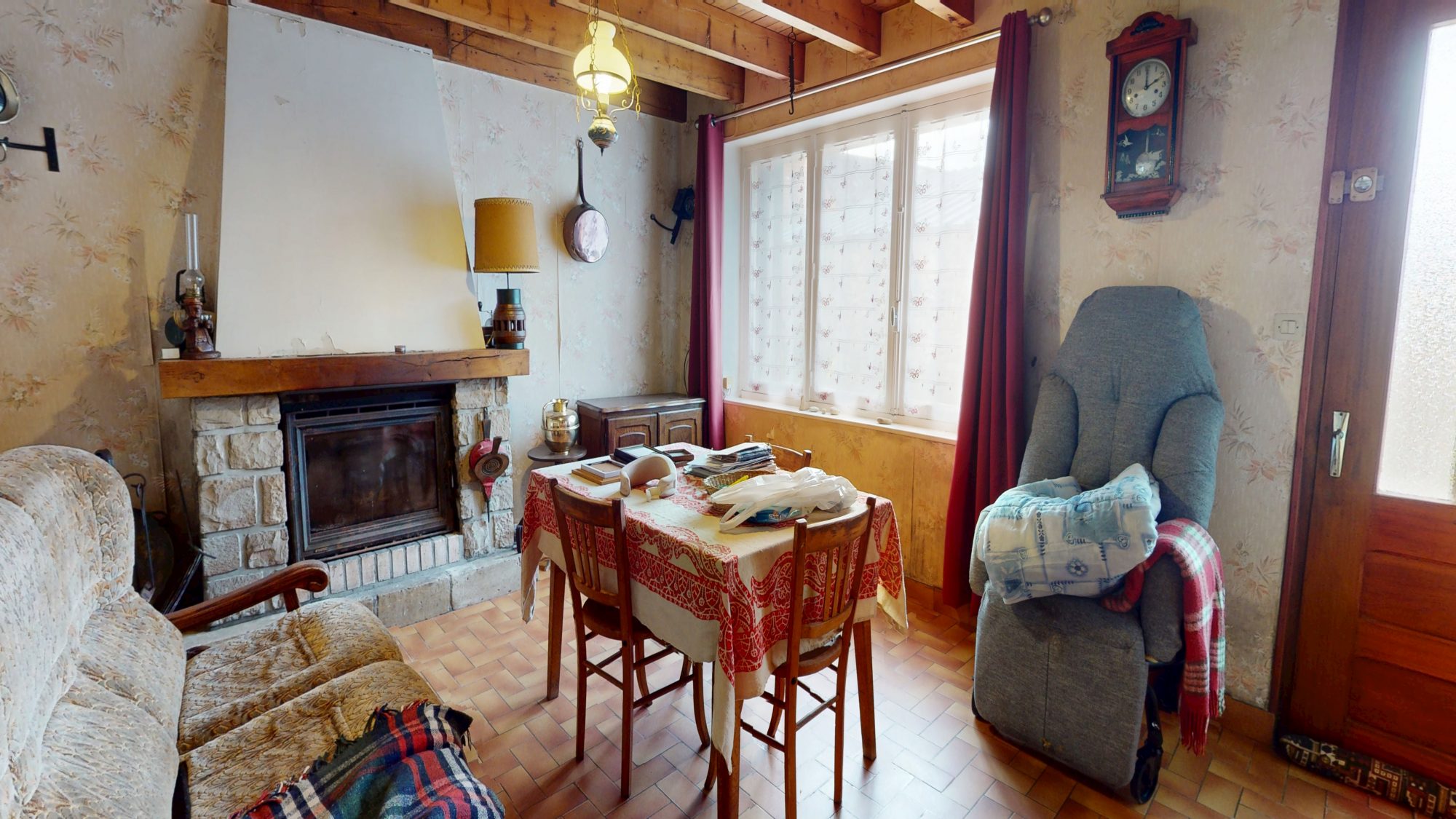 - Au rez-de-chaussée : dégagement avec poêle à granulés, cuisine, arrière cuisine / buanderie, séjour avec insert à bois et garage (dans lequel WC).