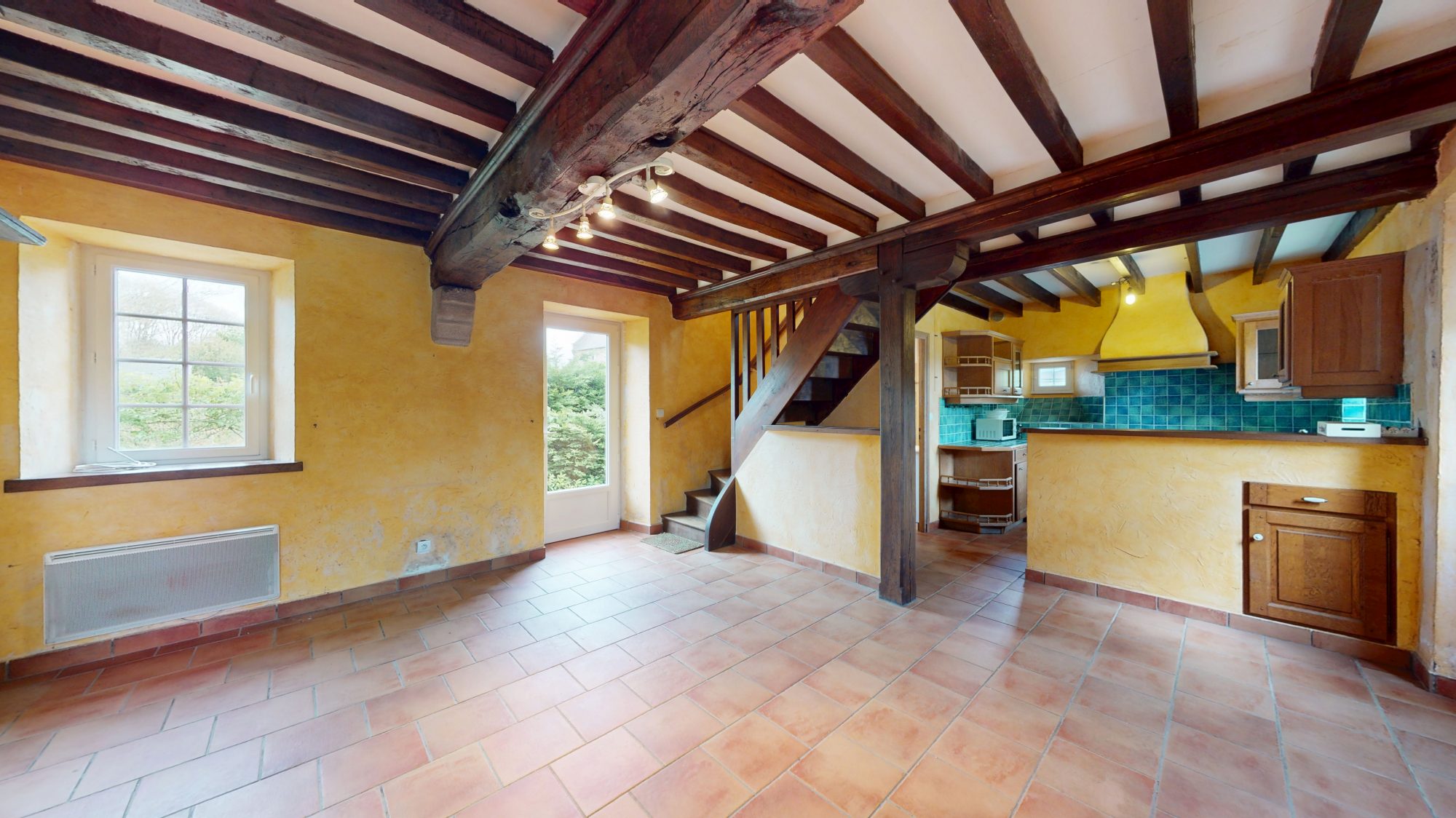 - au rez de chaussée : séjour avec poêle à bois, cuisine, salle d'eau avec WC.