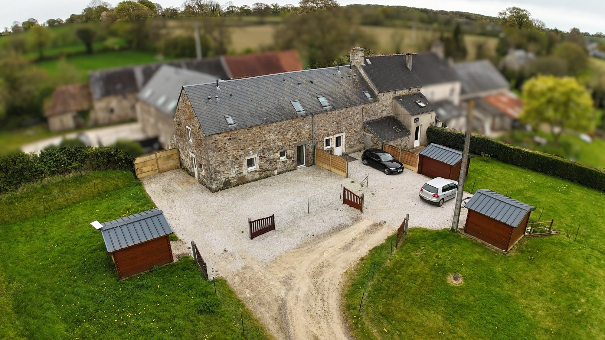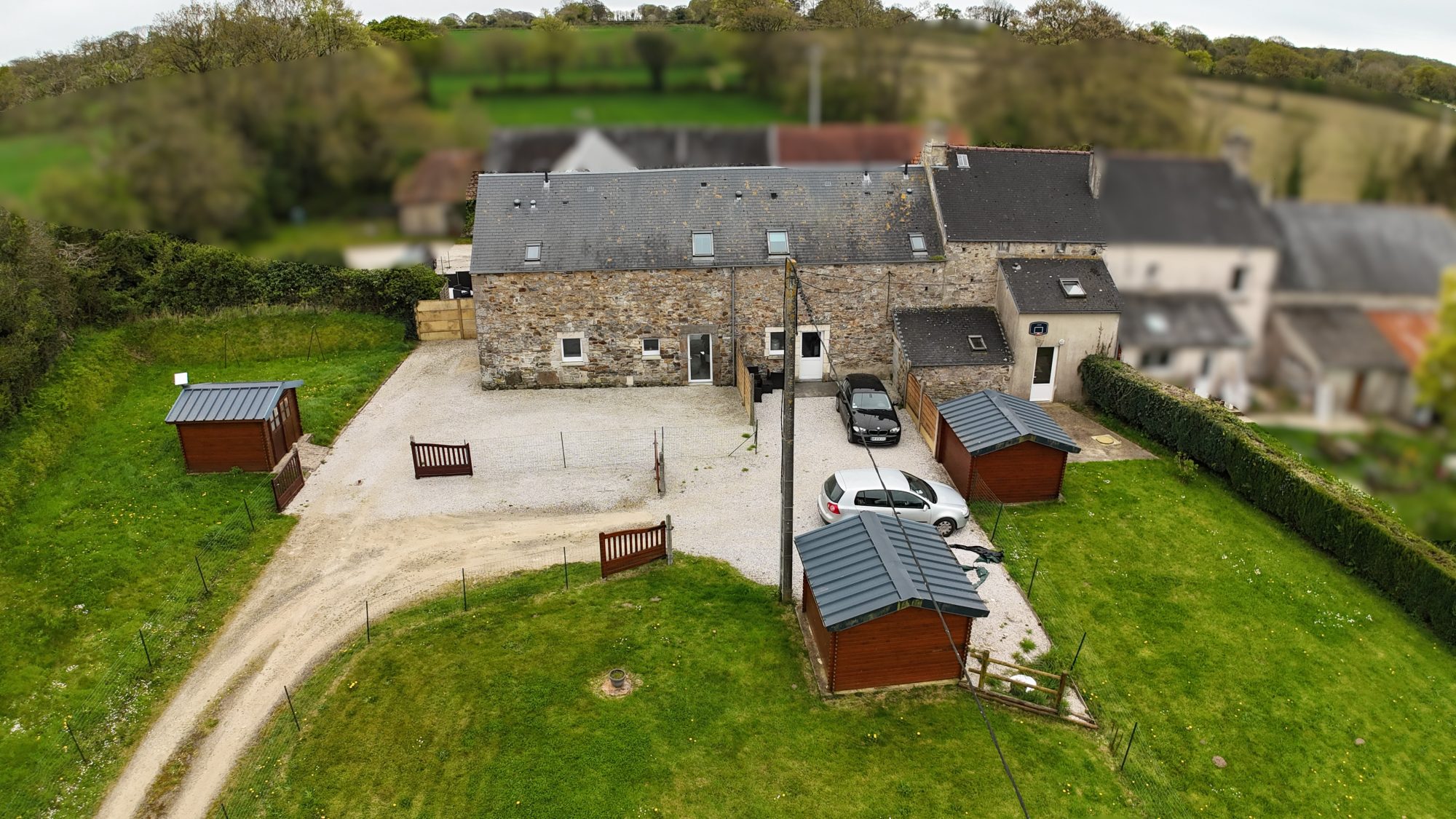 - d'un troisième logement T3 (75 m²) libre comprenant séjour-cuisine, arrière-cuisine, WC avec l'étage salle de bains, WC, 2 chambres.