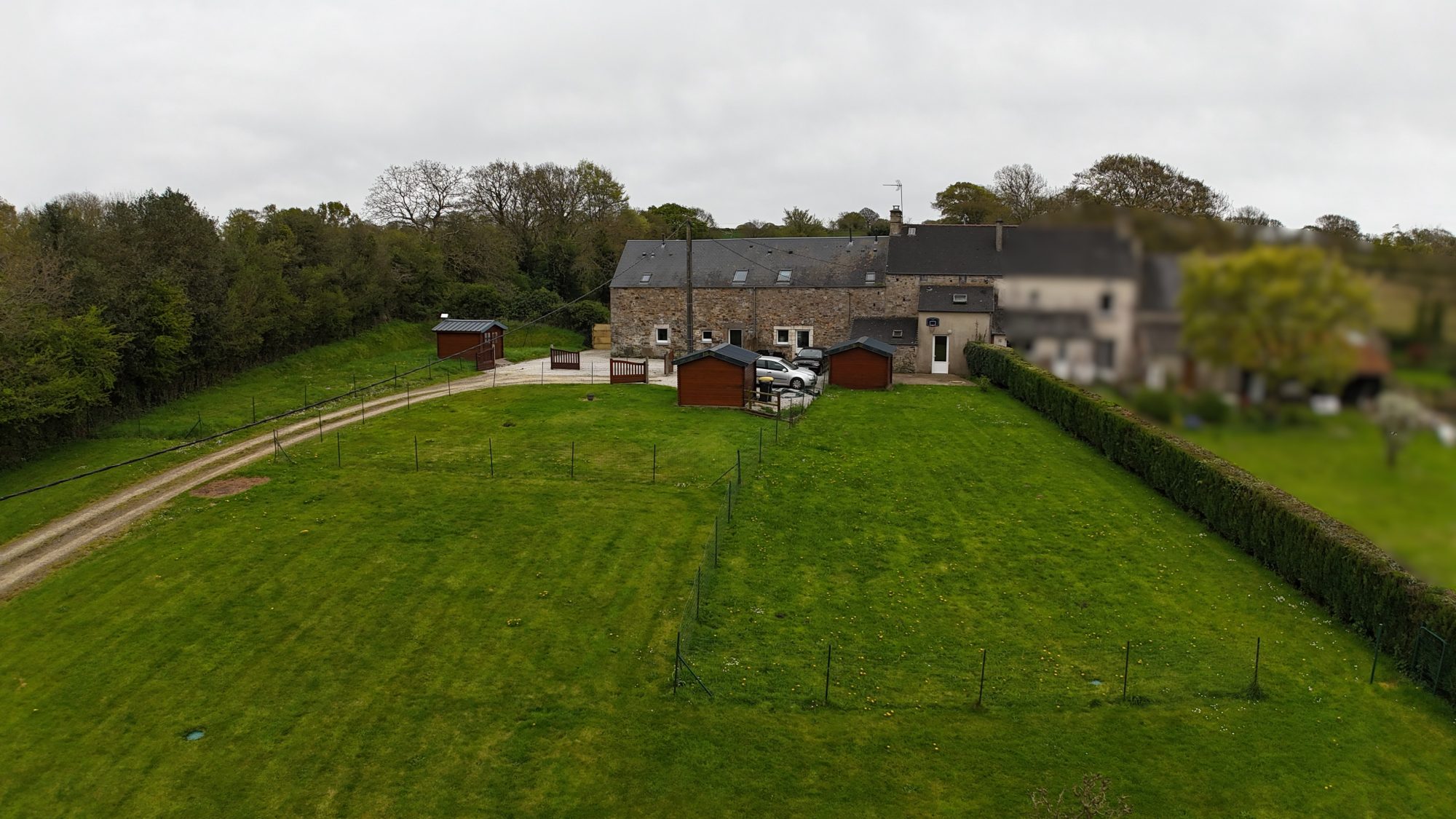 Sur un terrain de 3351 m², maison divisée en 3 logements locatifs composée :
