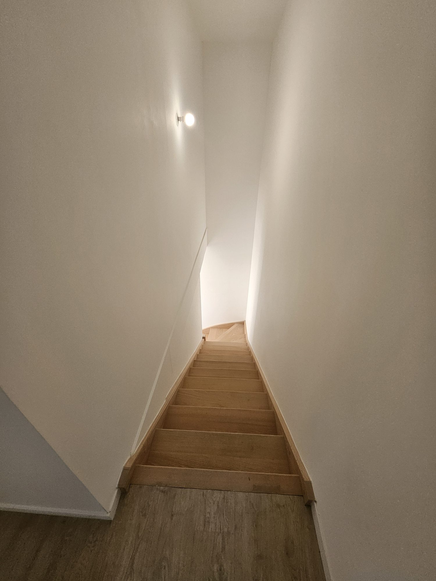 Combles : palier, une chambre mansardée et salle de bains avec WC.
