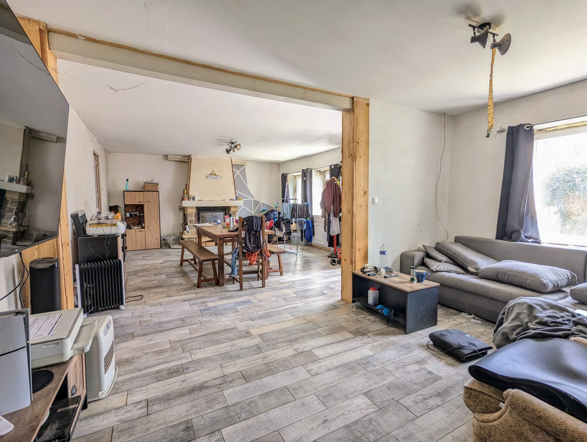 Elle se compose d’un séjour lumineux avec cheminée à insert, d’une cuisine indépendante, d’une salle de bains, de WC séparés, et de deux chambres.