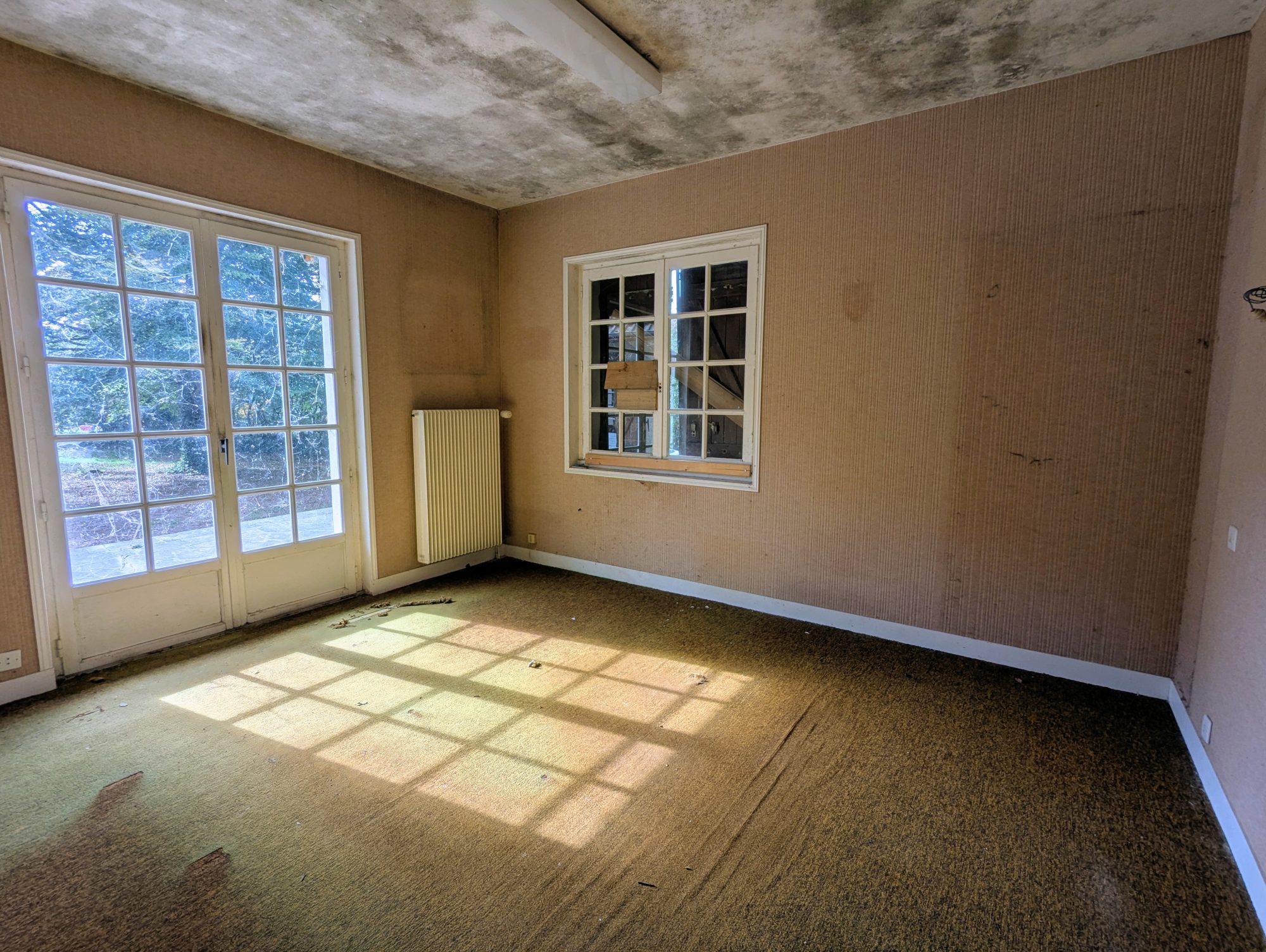 Elle se compose au rez-de-chaussée d’une entrée, d’un séjour lumineux d’environ 35 m² avec cheminée, d’une cuisine, d’un débarras, de deux chambres, d’une salle de bains et d’un WC.