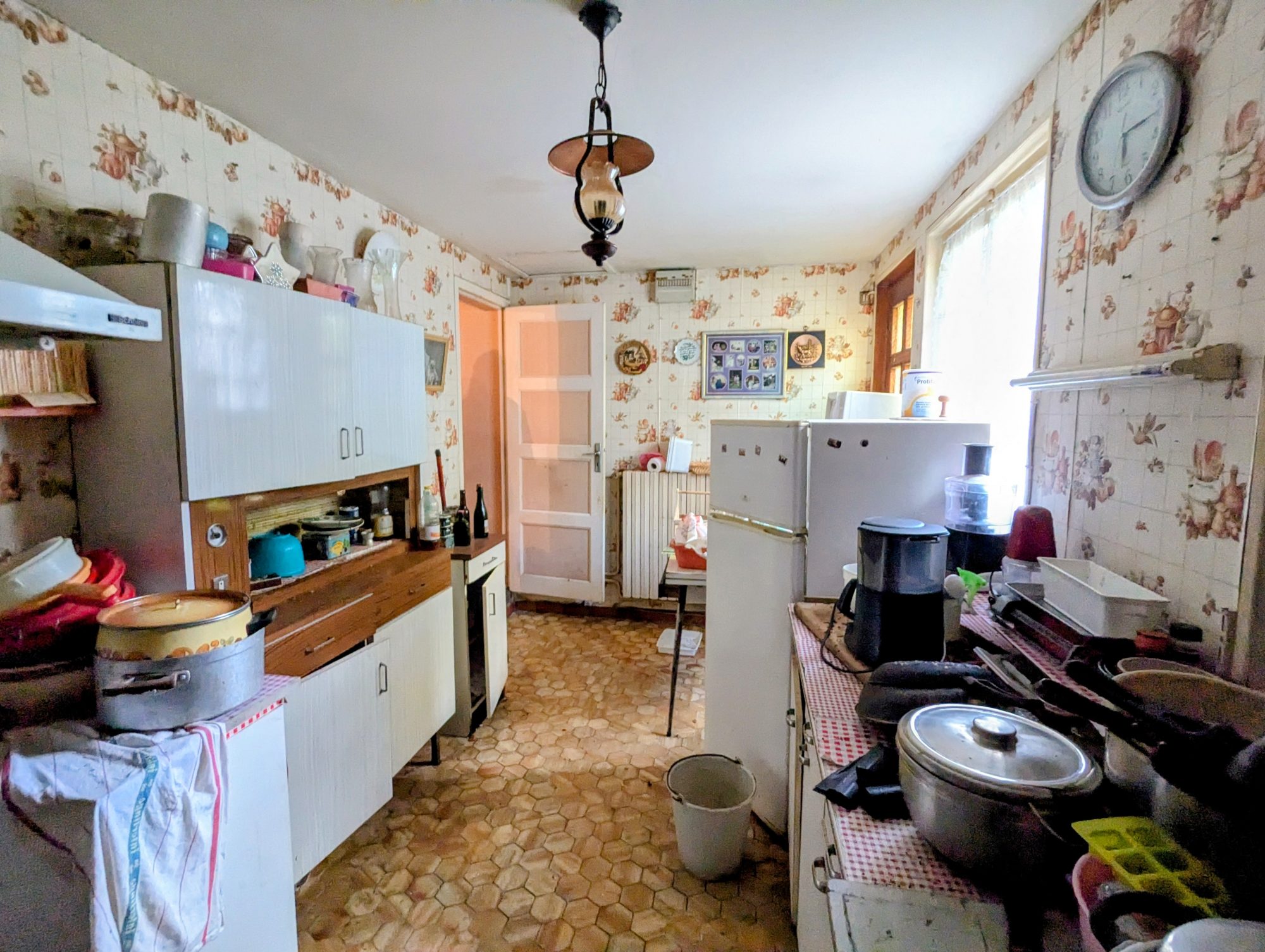La maison, à rénover, se compose, au rez-de-chaussée, d’une entrée, d’un séjour, d’une cuisine, d’une salle d’eau et d’un WC. À l’étage se trouvent trois chambres ainsi qu’un WC.