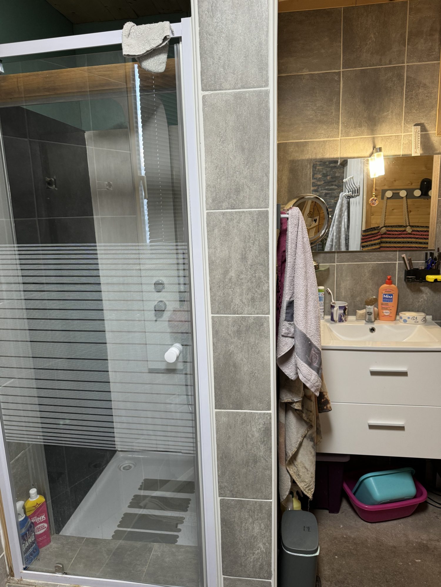 RDC: entrée, garage, cave, 2 pièces, salle d'eau et wc.
