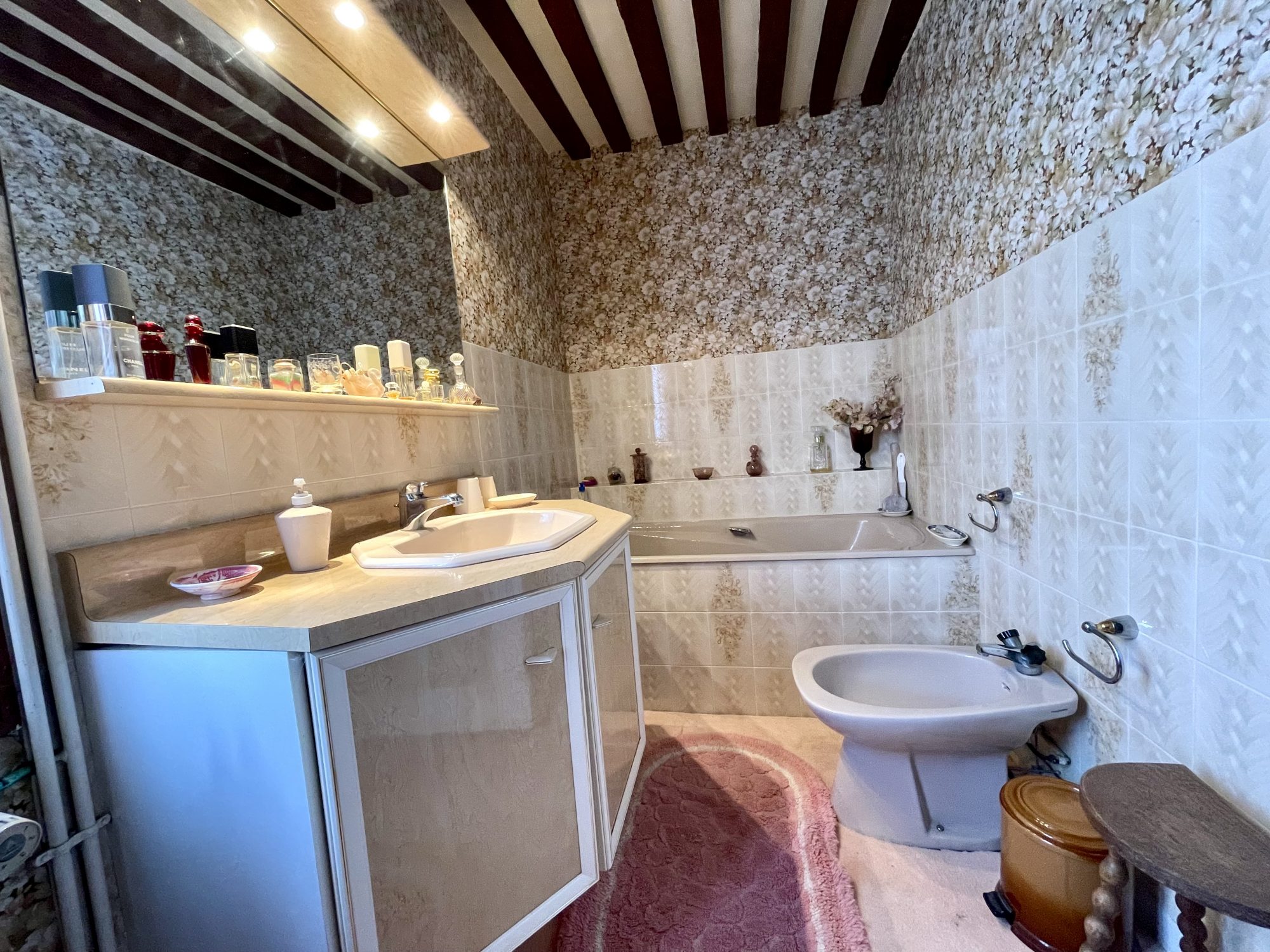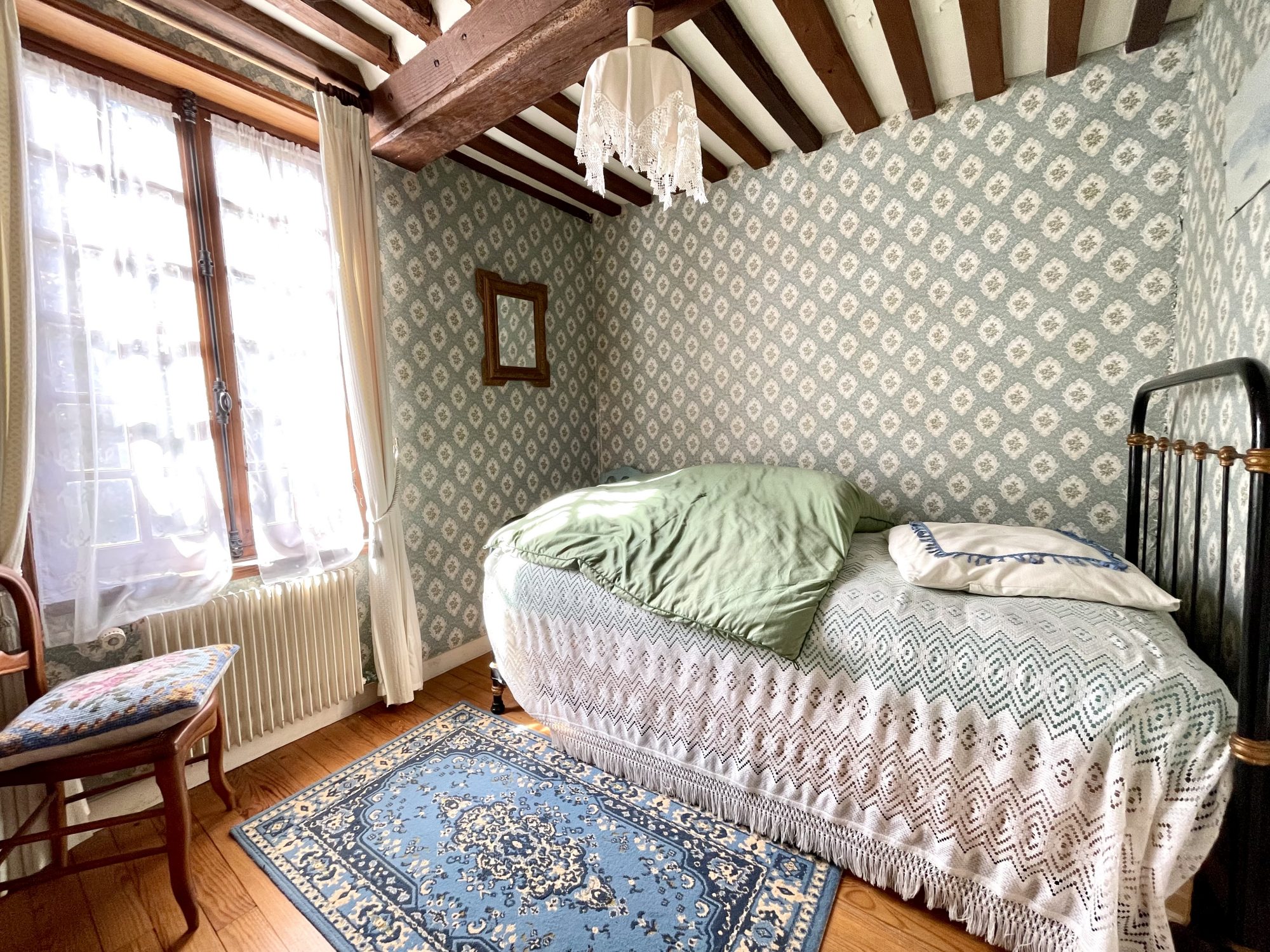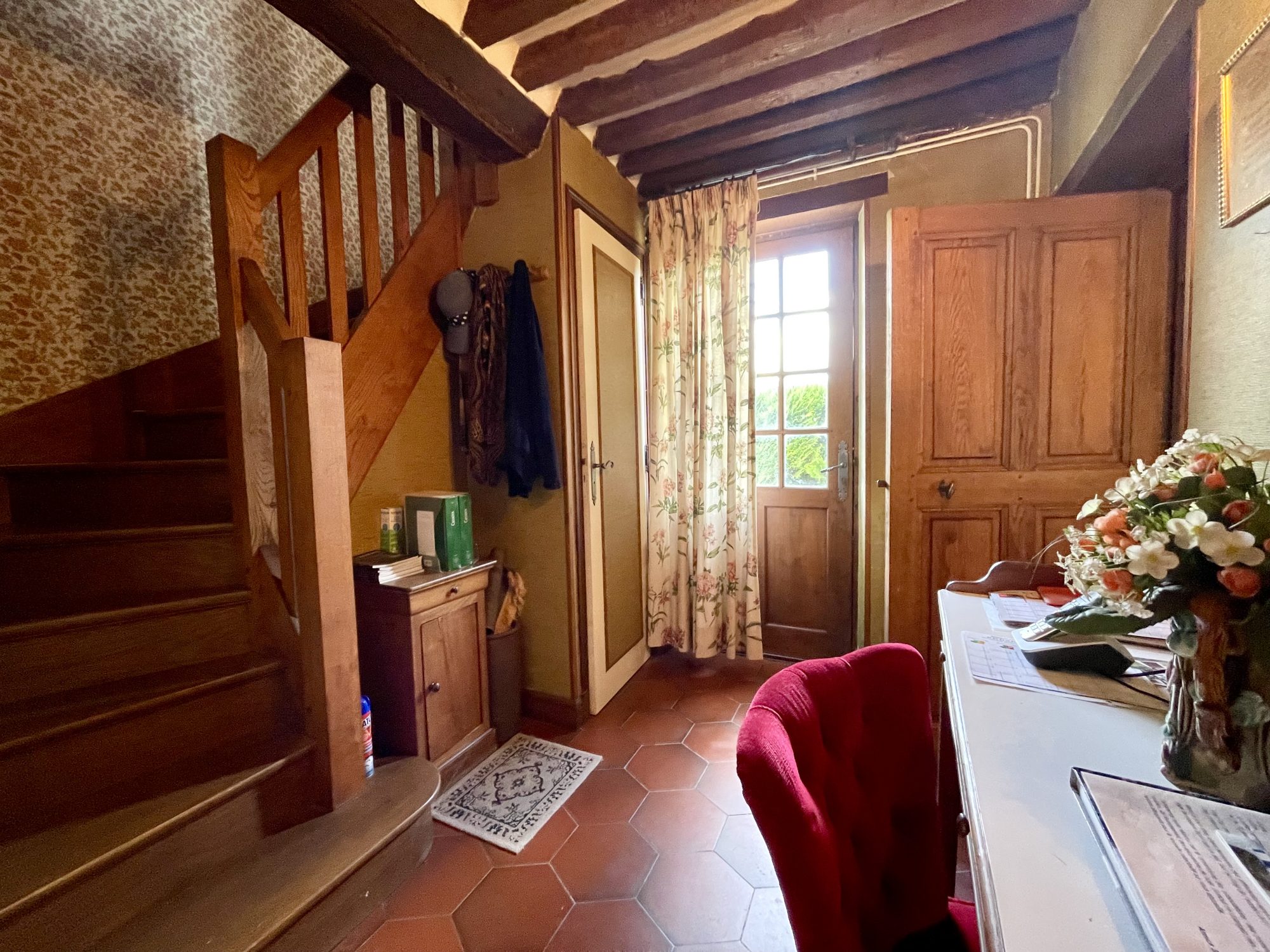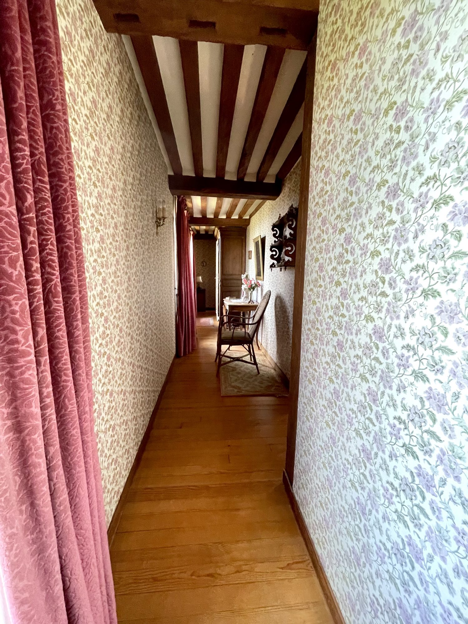 A l'étage un couloir desservant deux belles chambres , un bureau , wc et salle de bains .