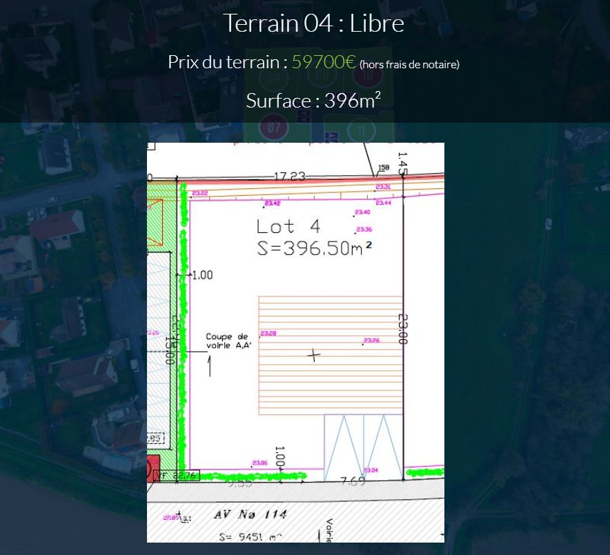 Les terrains, d’une superficie allant de 319 m² à 726 m², entièrement viabilisés, sont libres de constructeur et bénéficient de l’assainissement collectif.